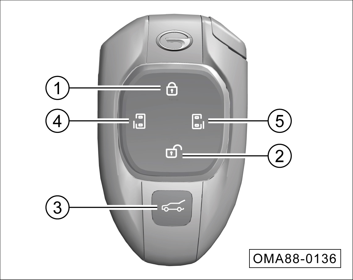 按键1次,所有车门将被闭锁,车窗和天窗自动关闭。