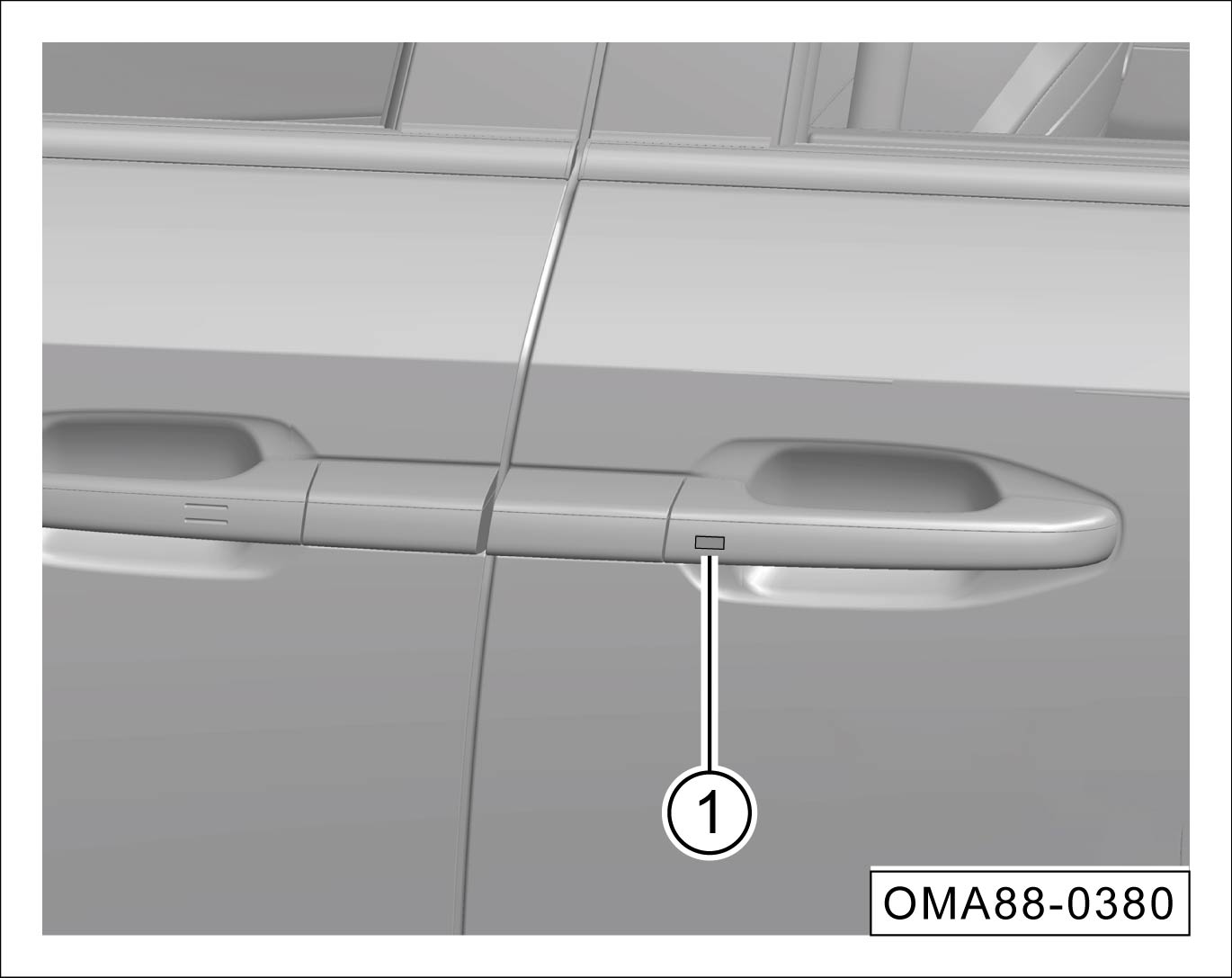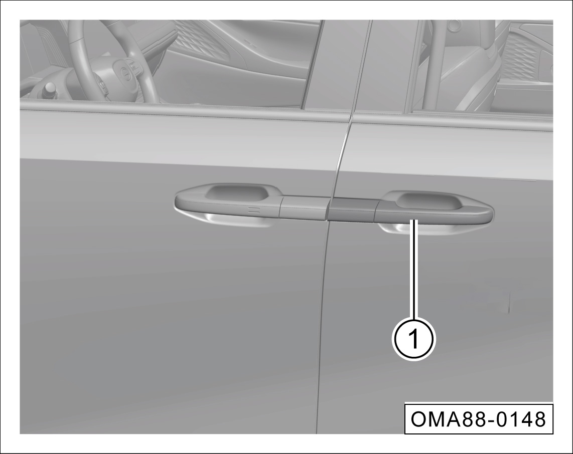 在滑移门全开状态下,拉动外把手①,电动关闭对应侧滑移门。