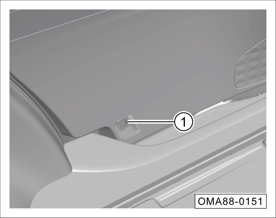 同时拉紧急拉索①和滑移门车内拉手,尝试开启滑移门。