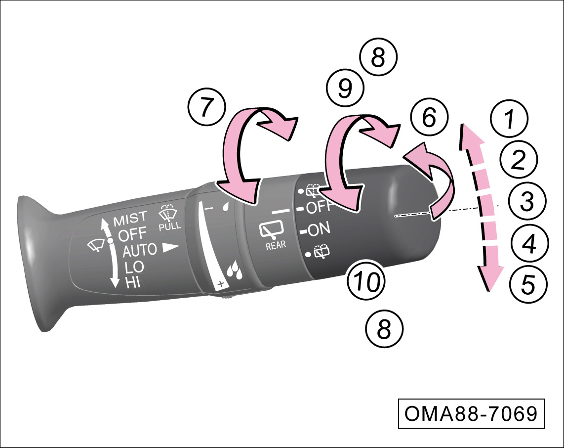 ⑨ OFF:关闭后风窗洗涤系统或后刮水