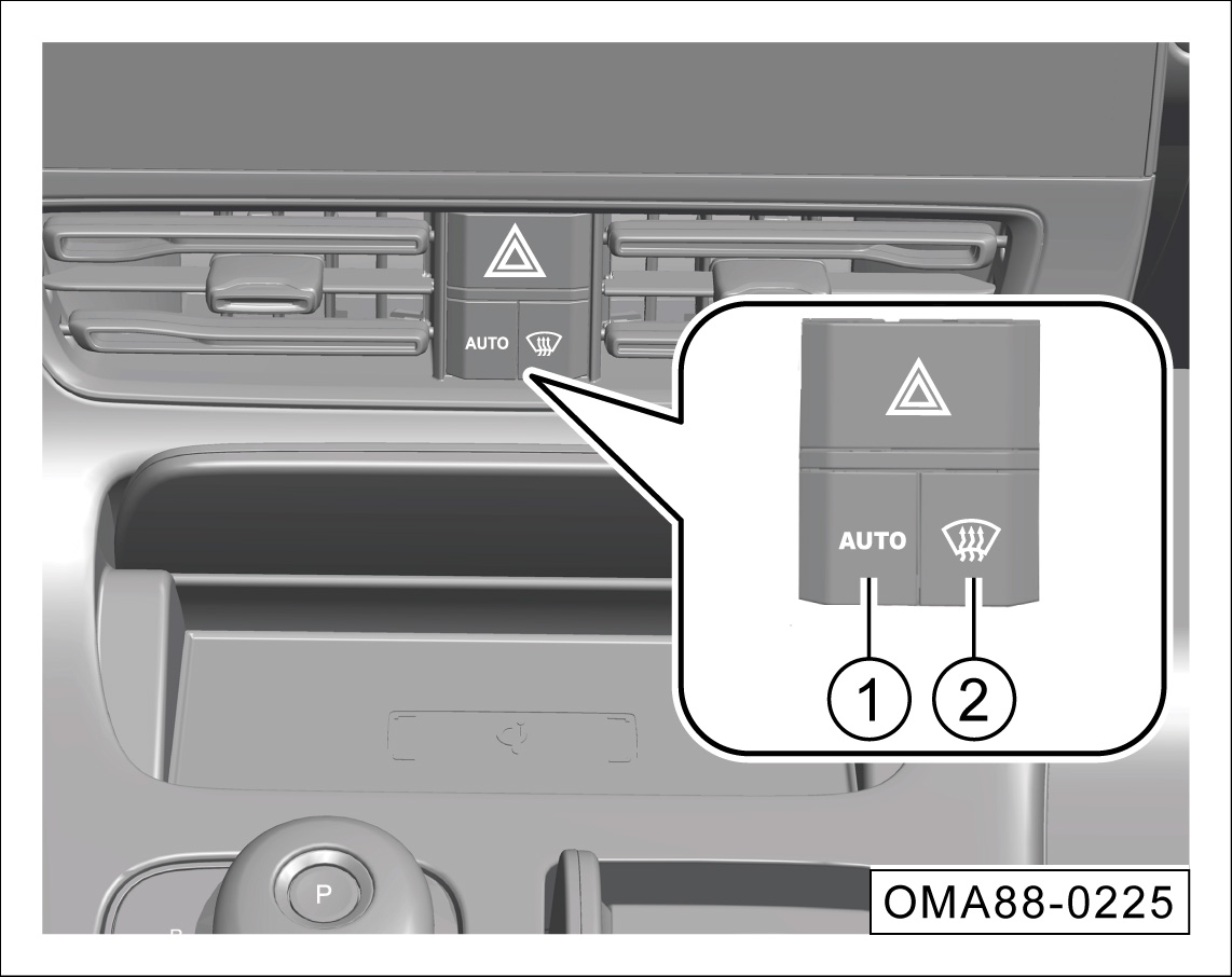 软按键,按键灯点亮,开启前风窗除霜、除雾功能。