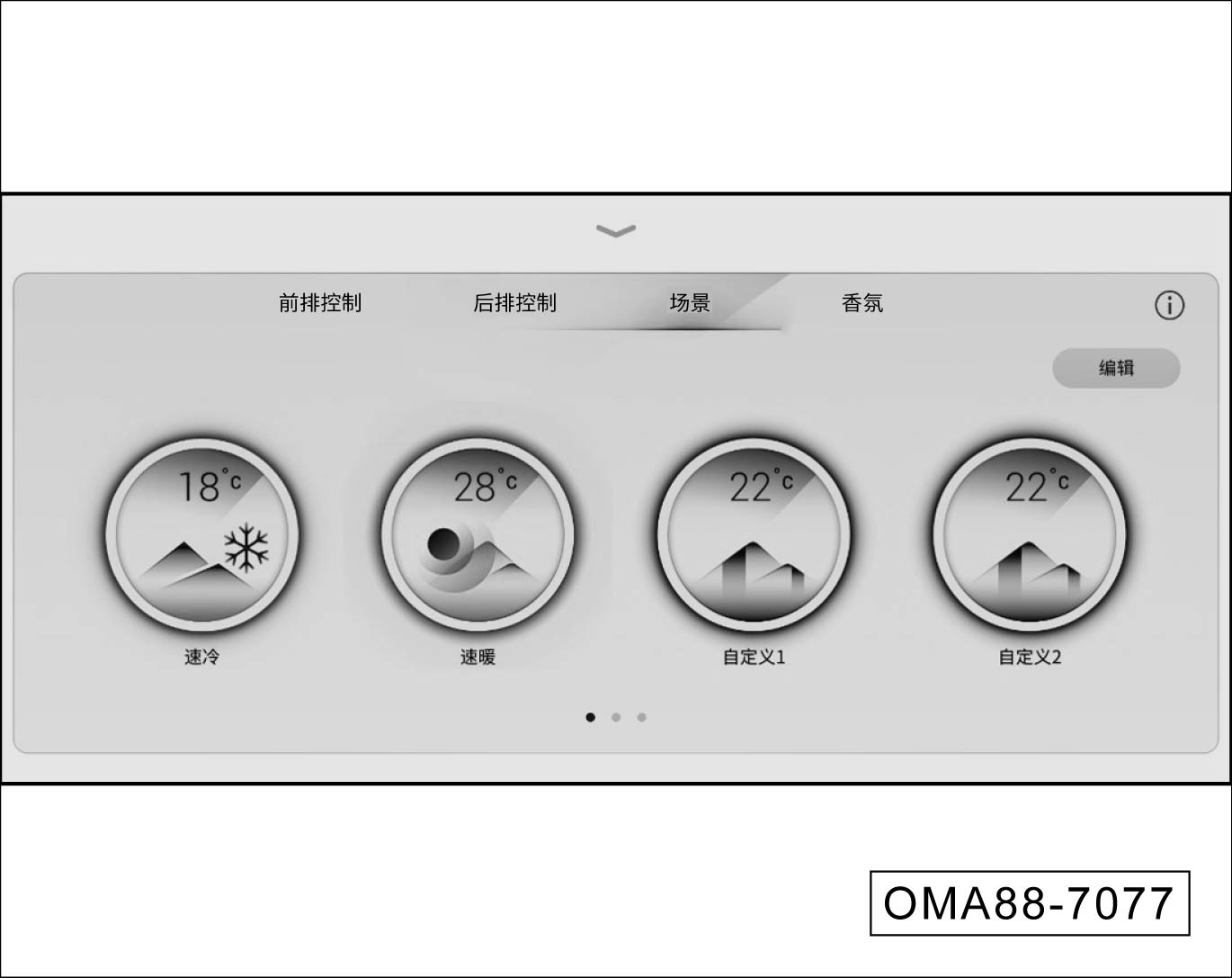 音响系统切换到空调系统控制界面,点击“场景”软按键进入空调场景界面。