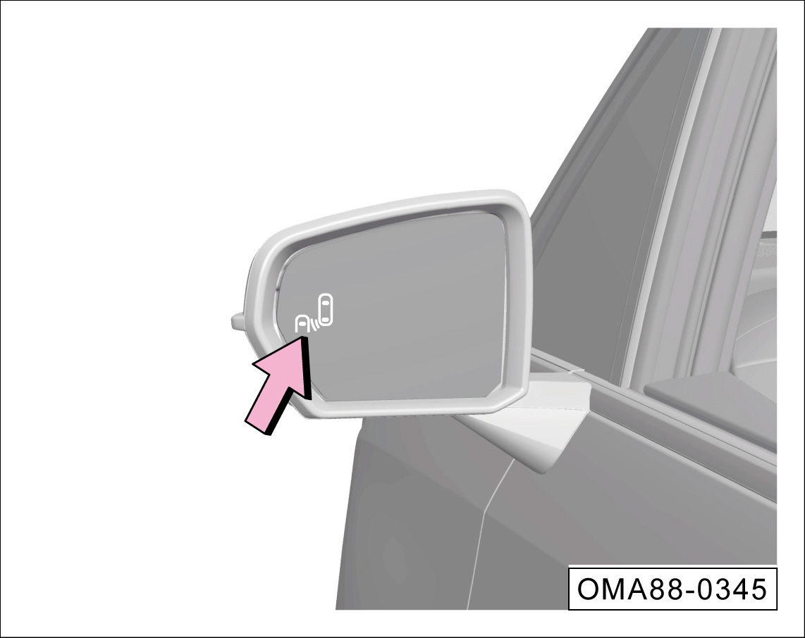 在此三种情况下,系统将发出警报,相应侧后视镜指示灯点亮,如果此时开启同侧的转向信号灯,指示灯变为闪烁,提示您变道风险。