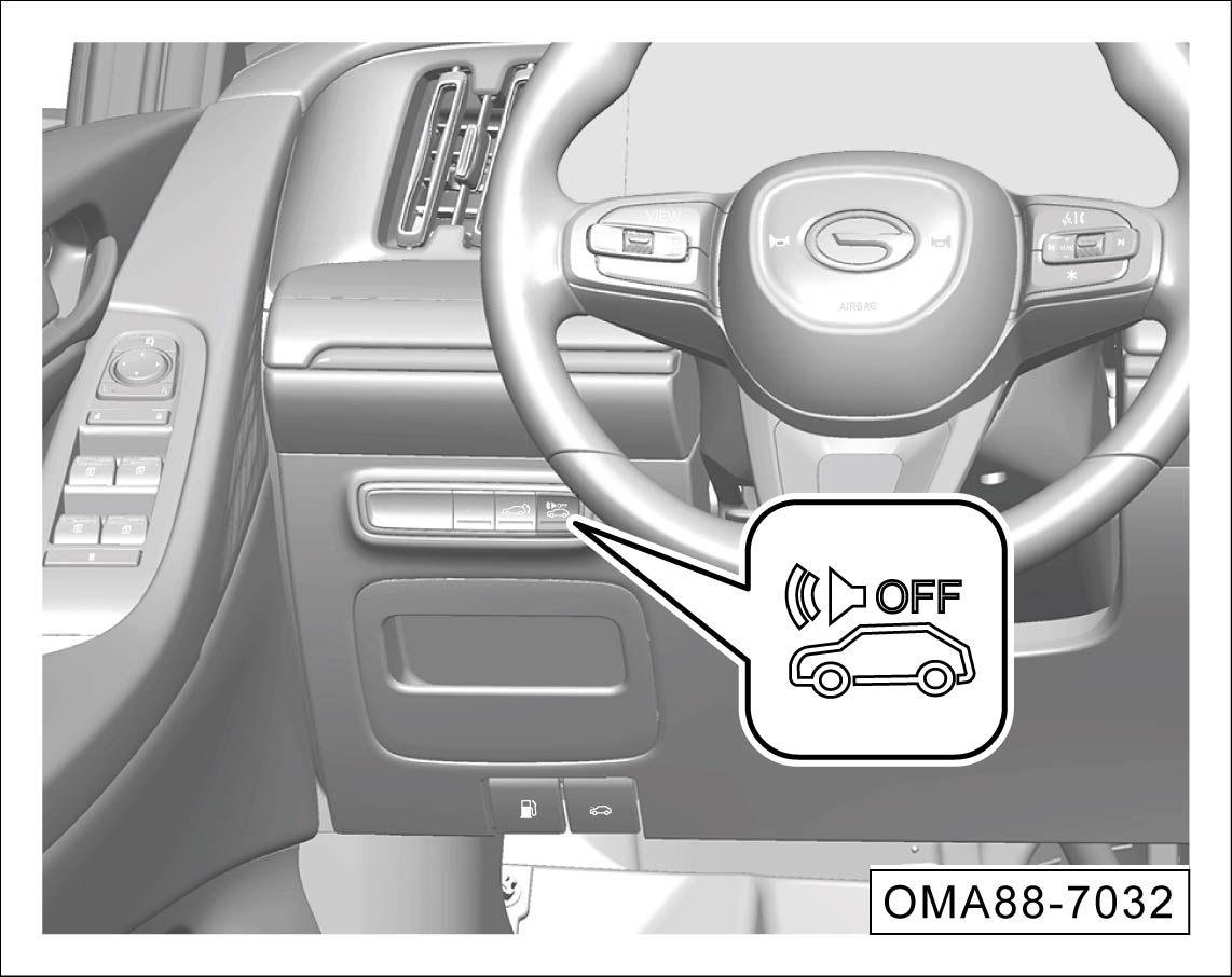 按压行人警示提示音系统关闭开关,开关提示灯点亮,此时行人警示提示音系统关闭,系统不发声。