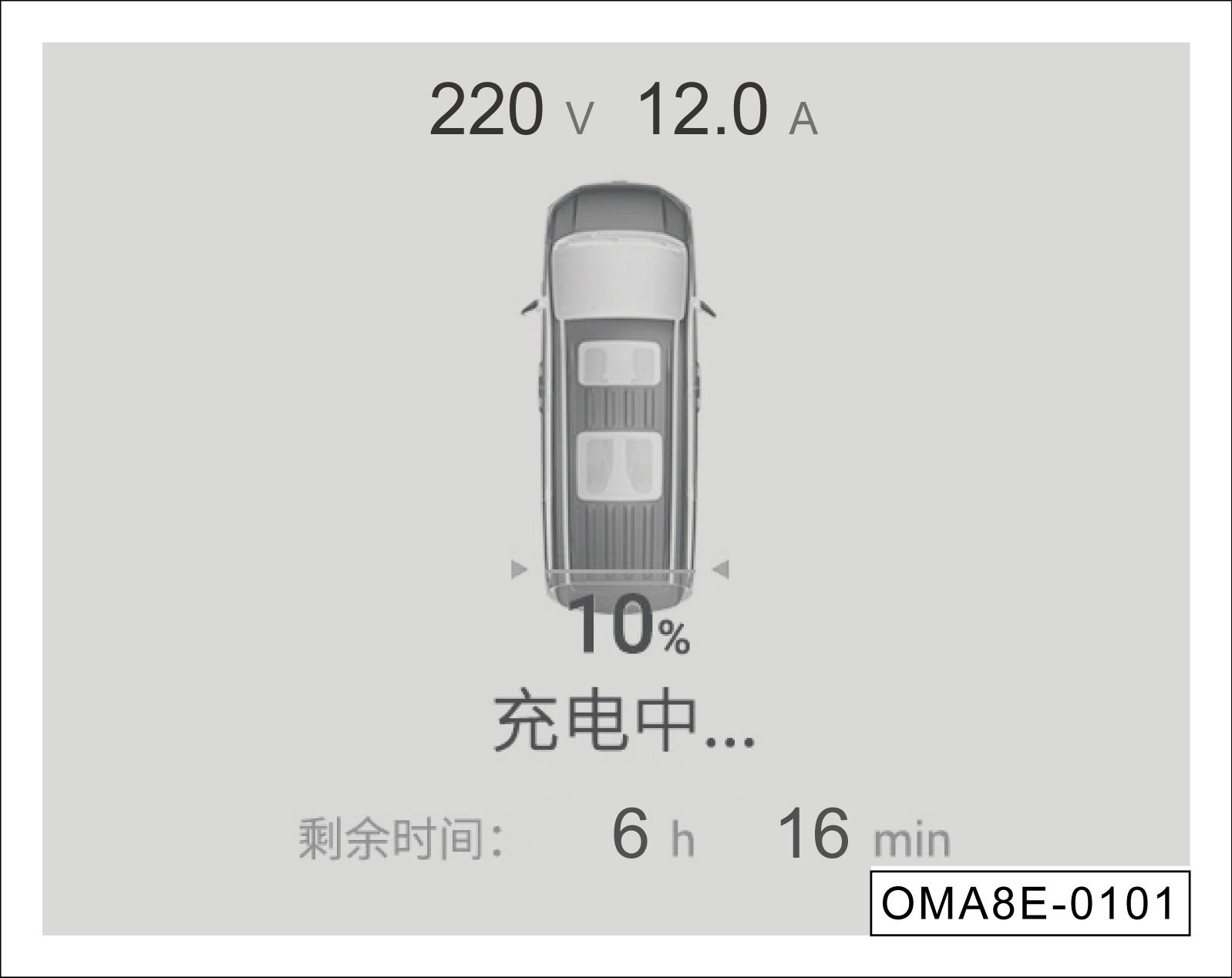 整车电源在“ON”挡时,连接充电枪,组合仪表自动弹出充电界面。