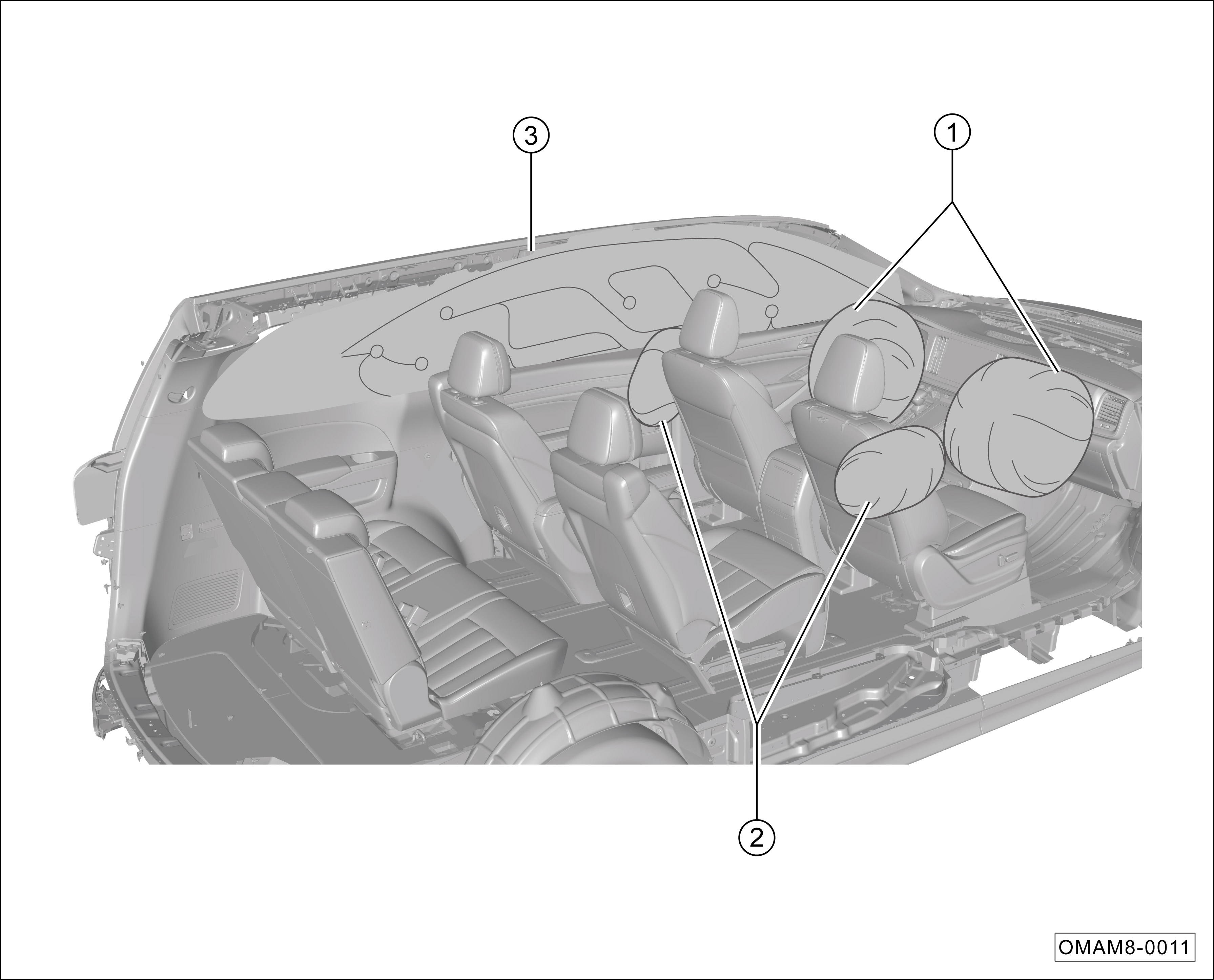 ② 前排侧面安全气囊。