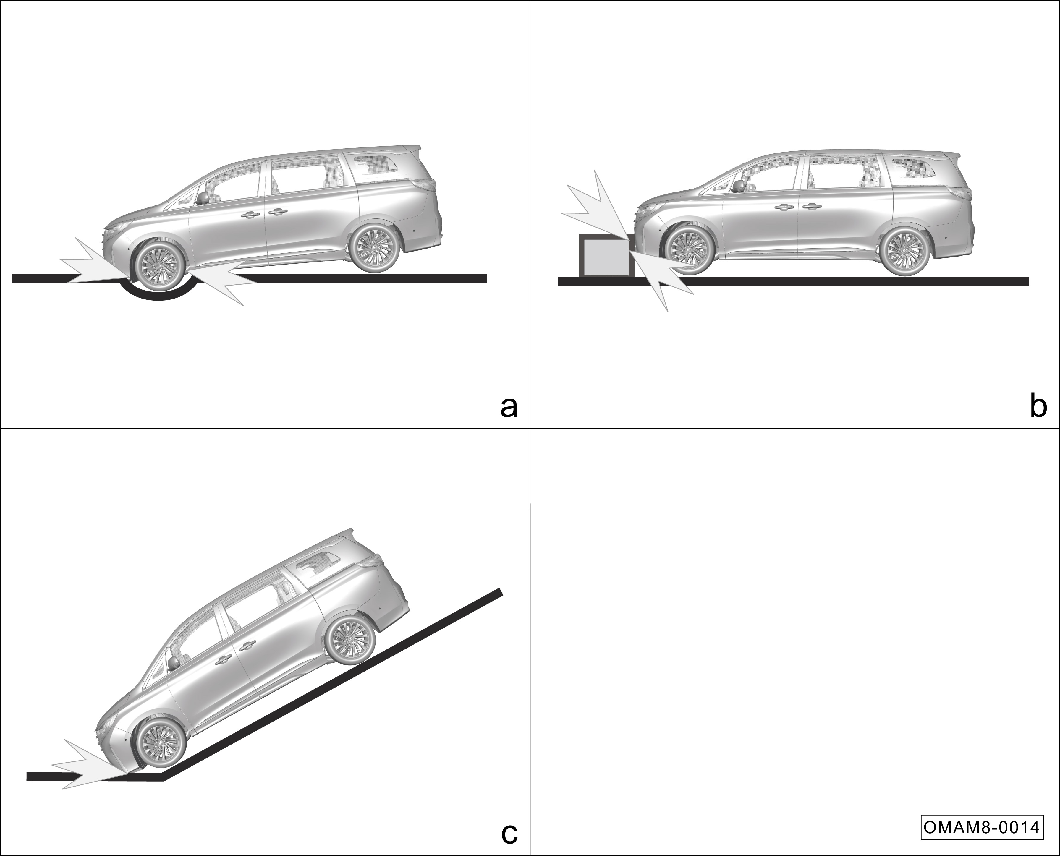 b.撞到路边的凸起物、街边石等。