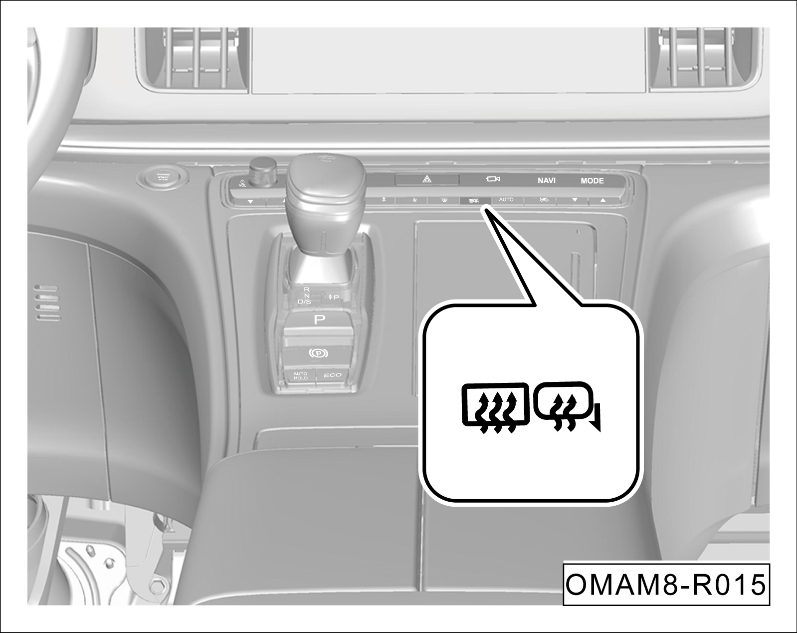 启动开关切换至“ON”挡位,踩下制动踏板,换挡杆挂入“R”挡。