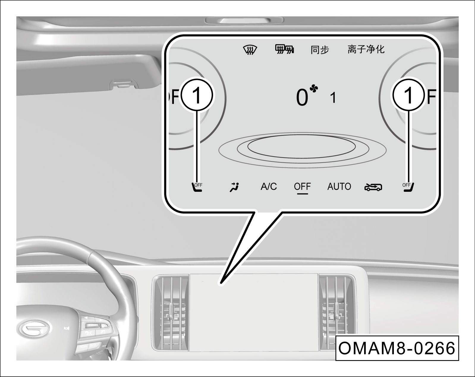 如果加热打开后很长时间也感觉不到座椅温度有变化或者感觉发烫,应立刻关闭座椅加热并请及时前往广汽传祺特约店进行检修。