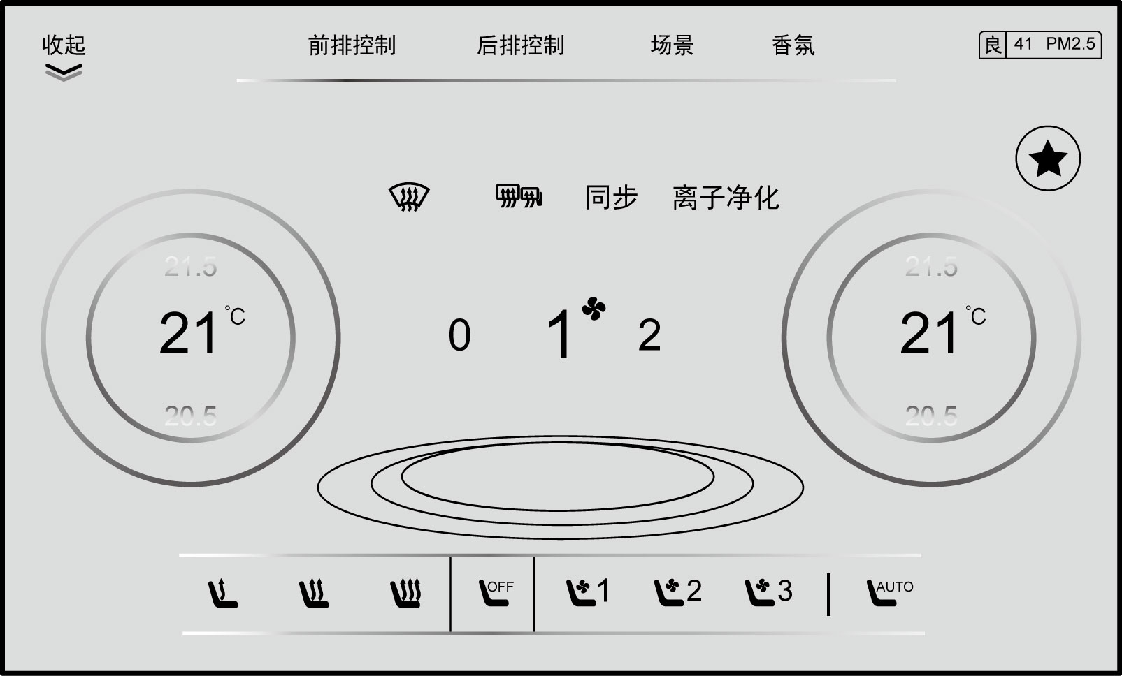 软按键①,弹出座椅加热/通风挡位选择按键。