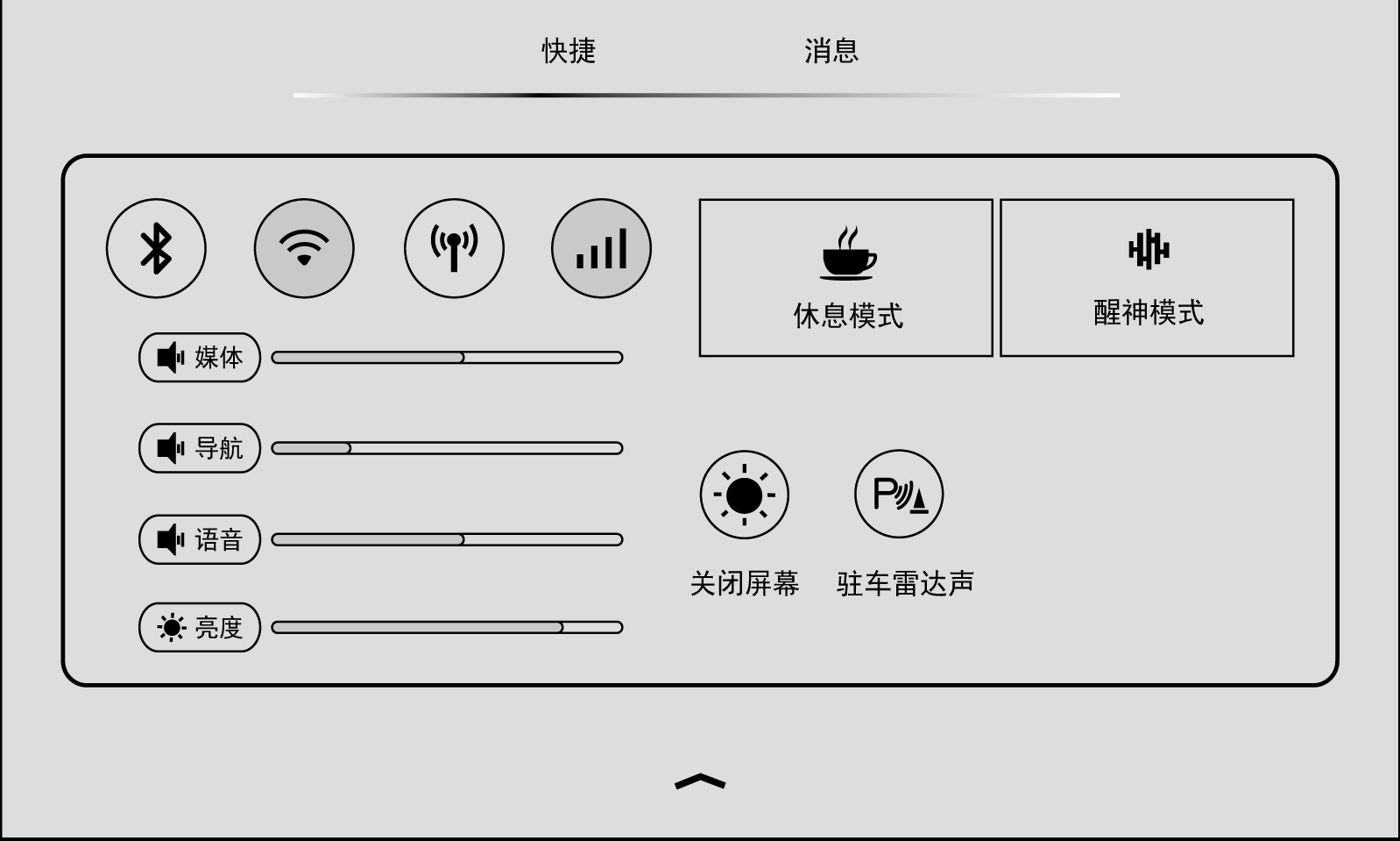 点击“快捷”、“消息”按钮,可切换至快捷下拉界面及消息下拉界面。