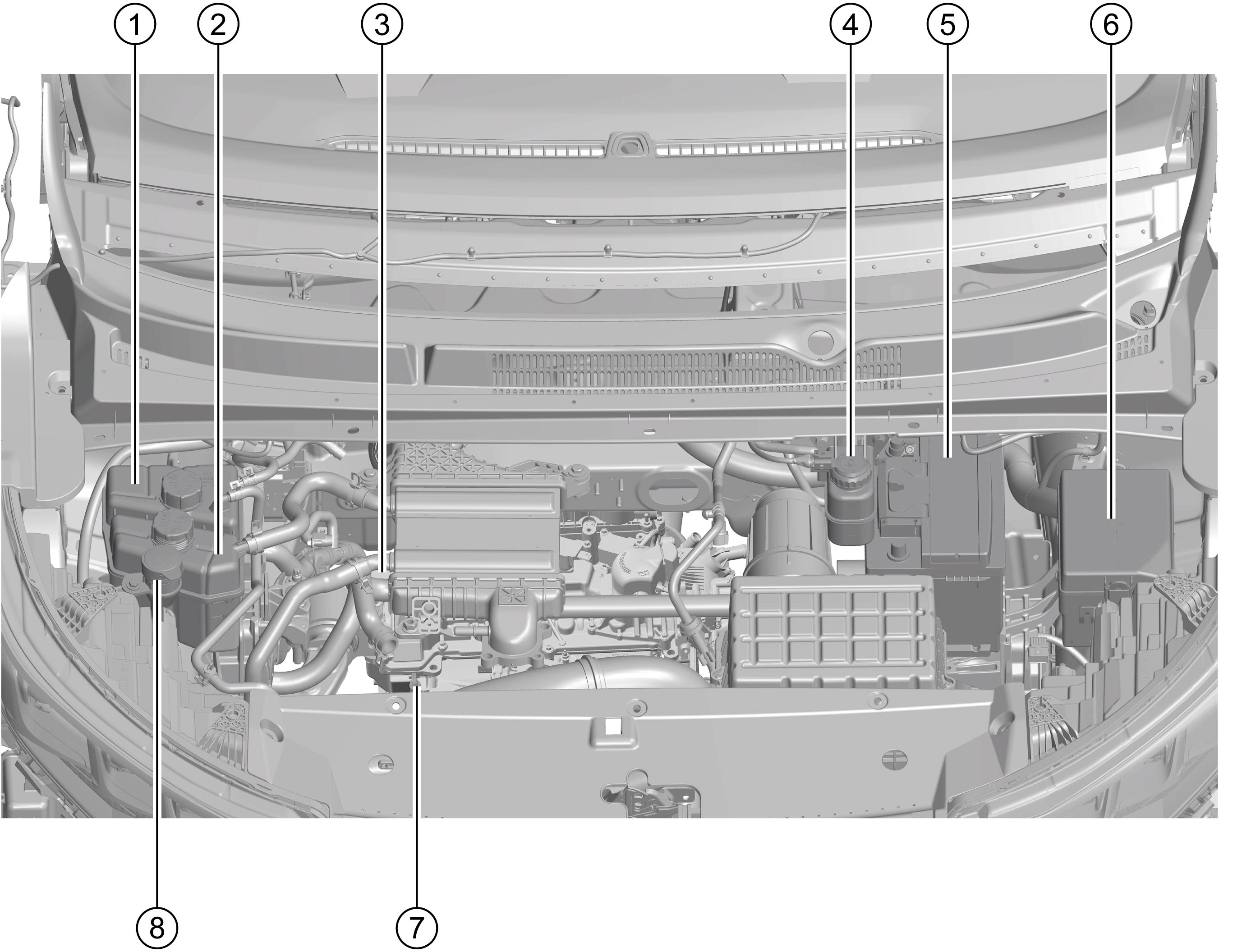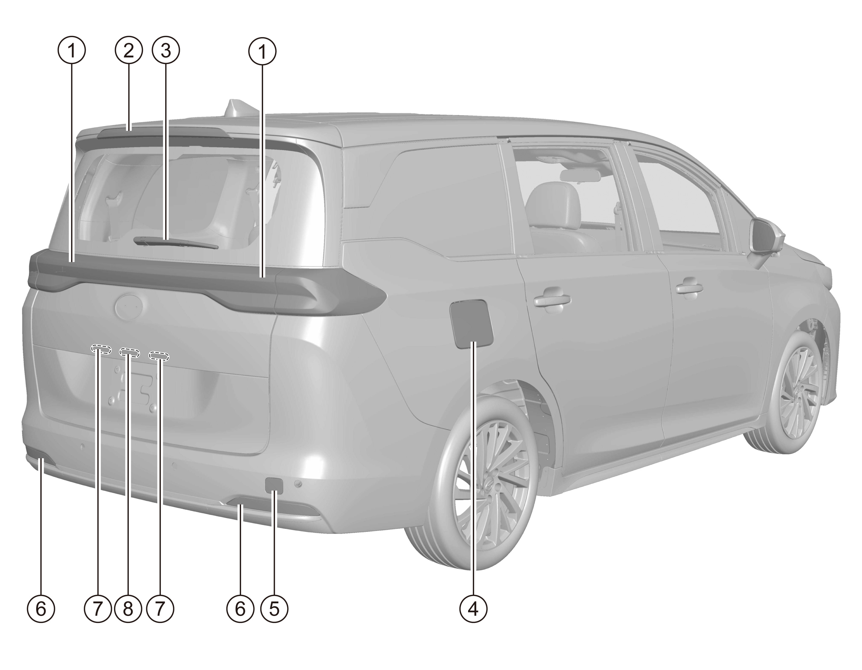 ⑧ 风窗洗涤液储液罐 风窗洗涤液和雨刮器片