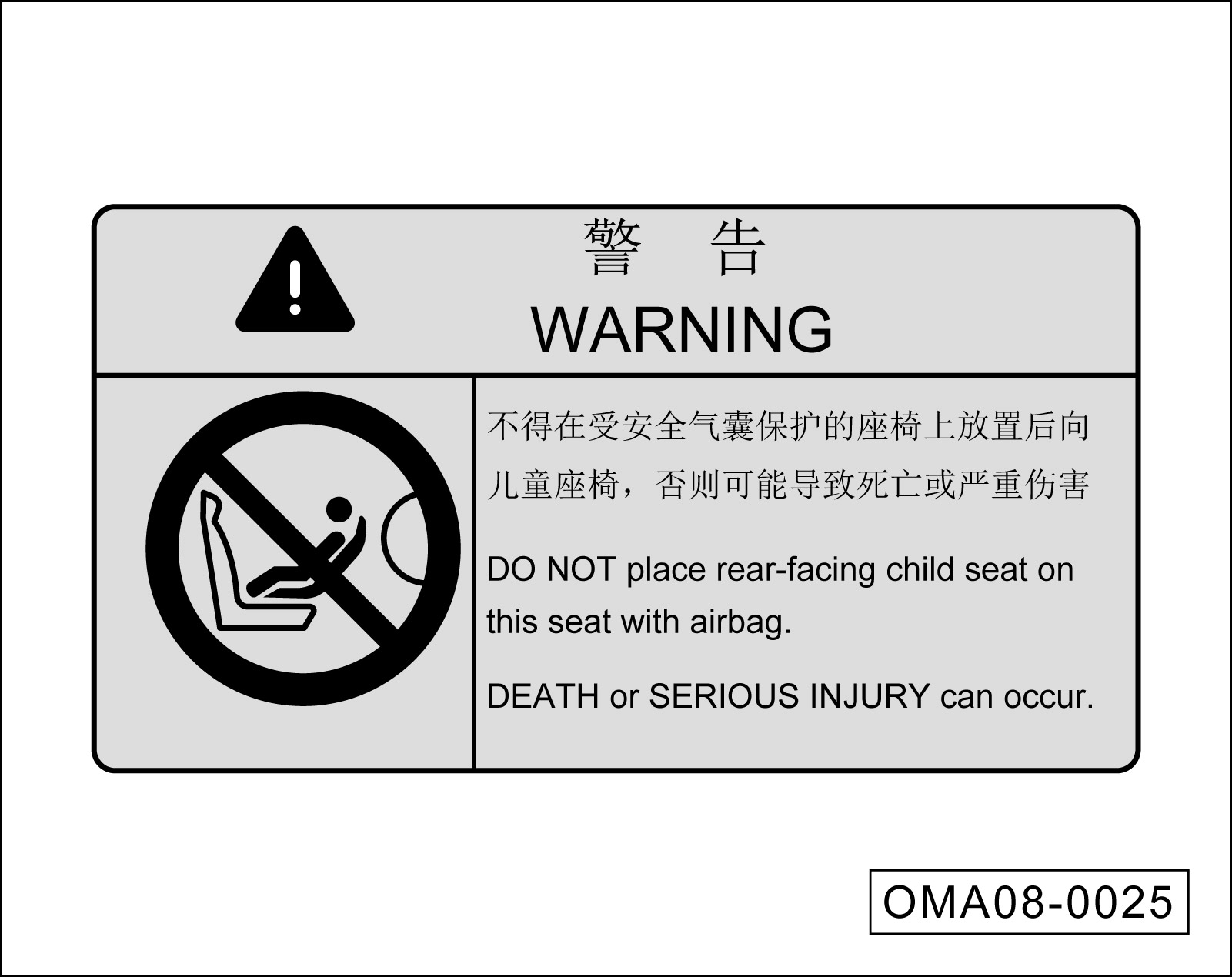 不得在受正面安全气囊保护的座位上使用后向儿童约束系统!