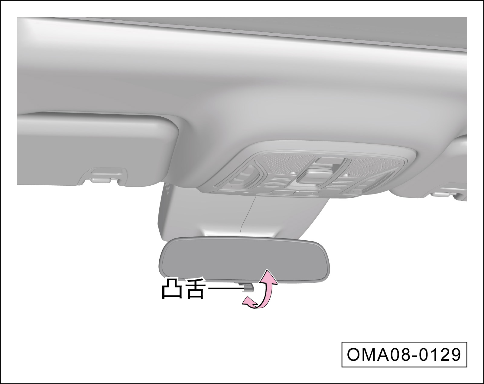 如图凸舌在正常后视角度,向前拨凸舌,可使后方照射进来的反光偏置,达到防眩目功能。