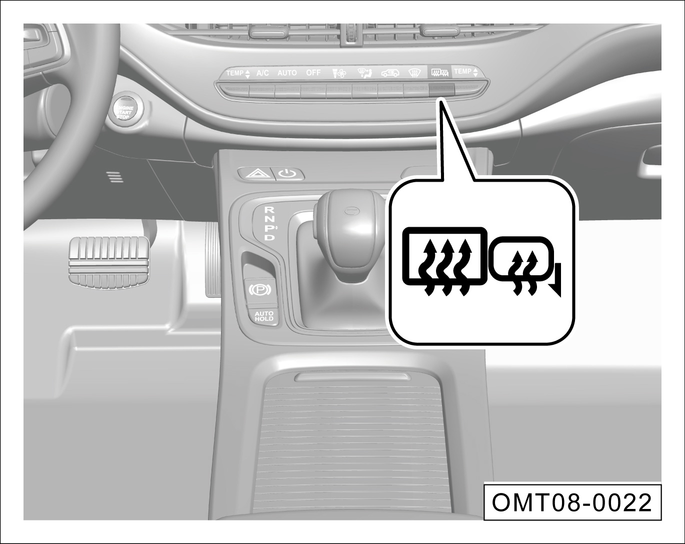 按键,按键指示灯点亮,开启加热功能,可清除外后视镜与后风窗玻璃的雾气或冰霜。