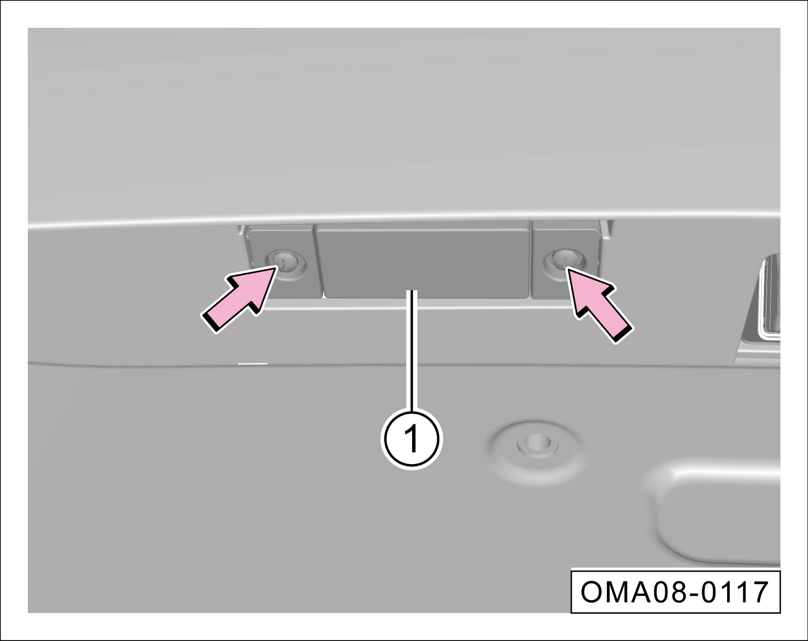 旋出牌照灯总成固定螺钉-箭头-,取出牌照灯总成①。