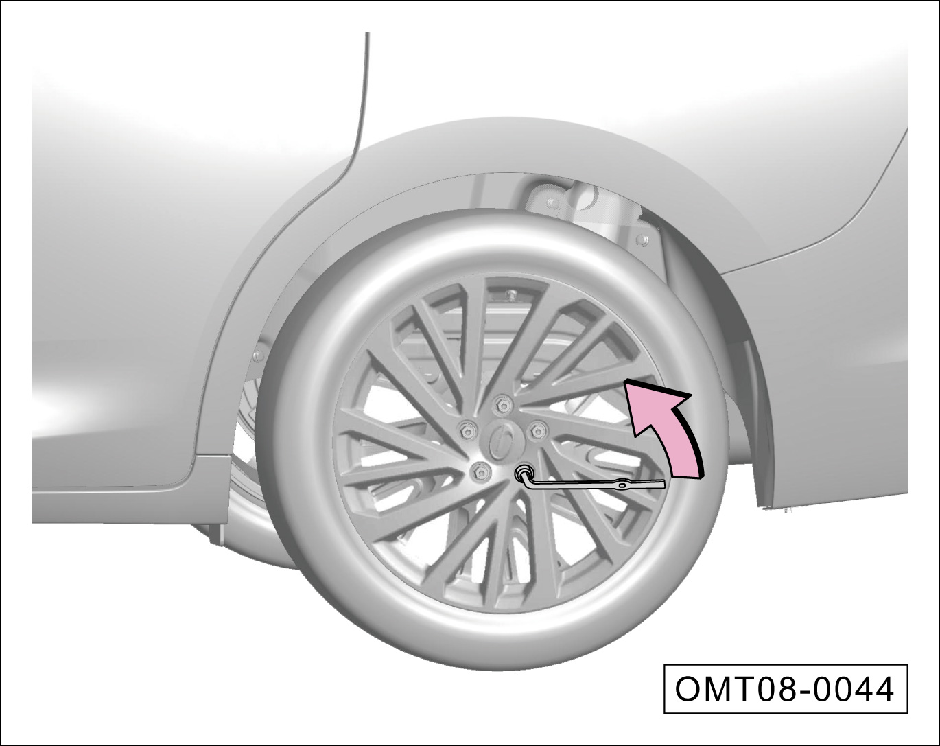举升车辆前,只需拧松车轮螺栓一圈。举升车辆后,再完全拧出车轮螺栓,然后拆下漏气轮胎。