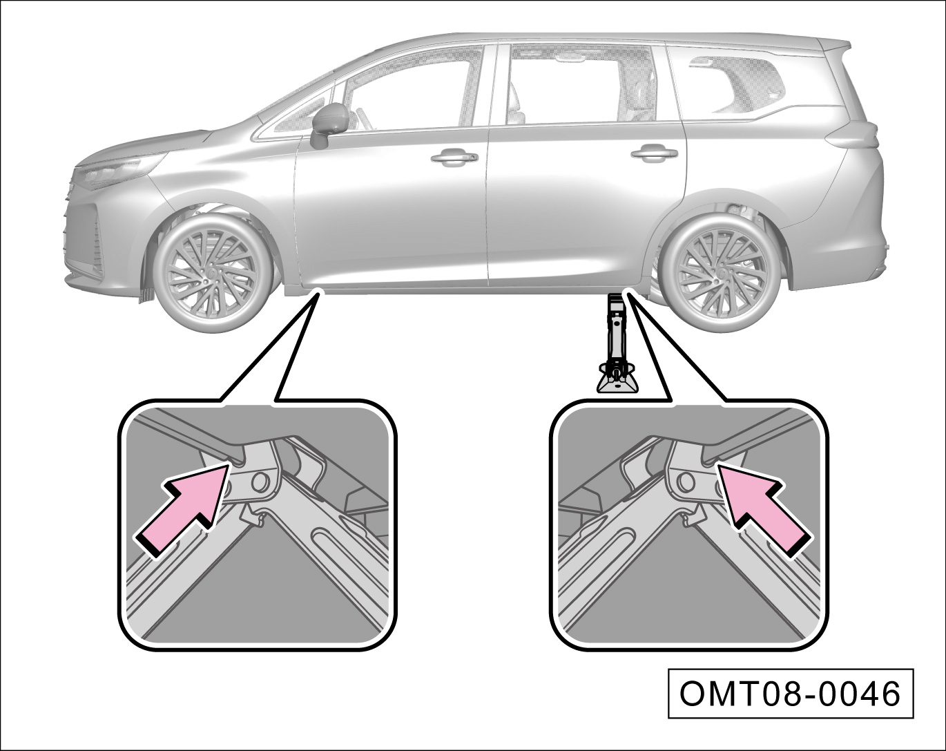 顺时针摇高千斤顶,举升车辆,使轮胎离开地面。