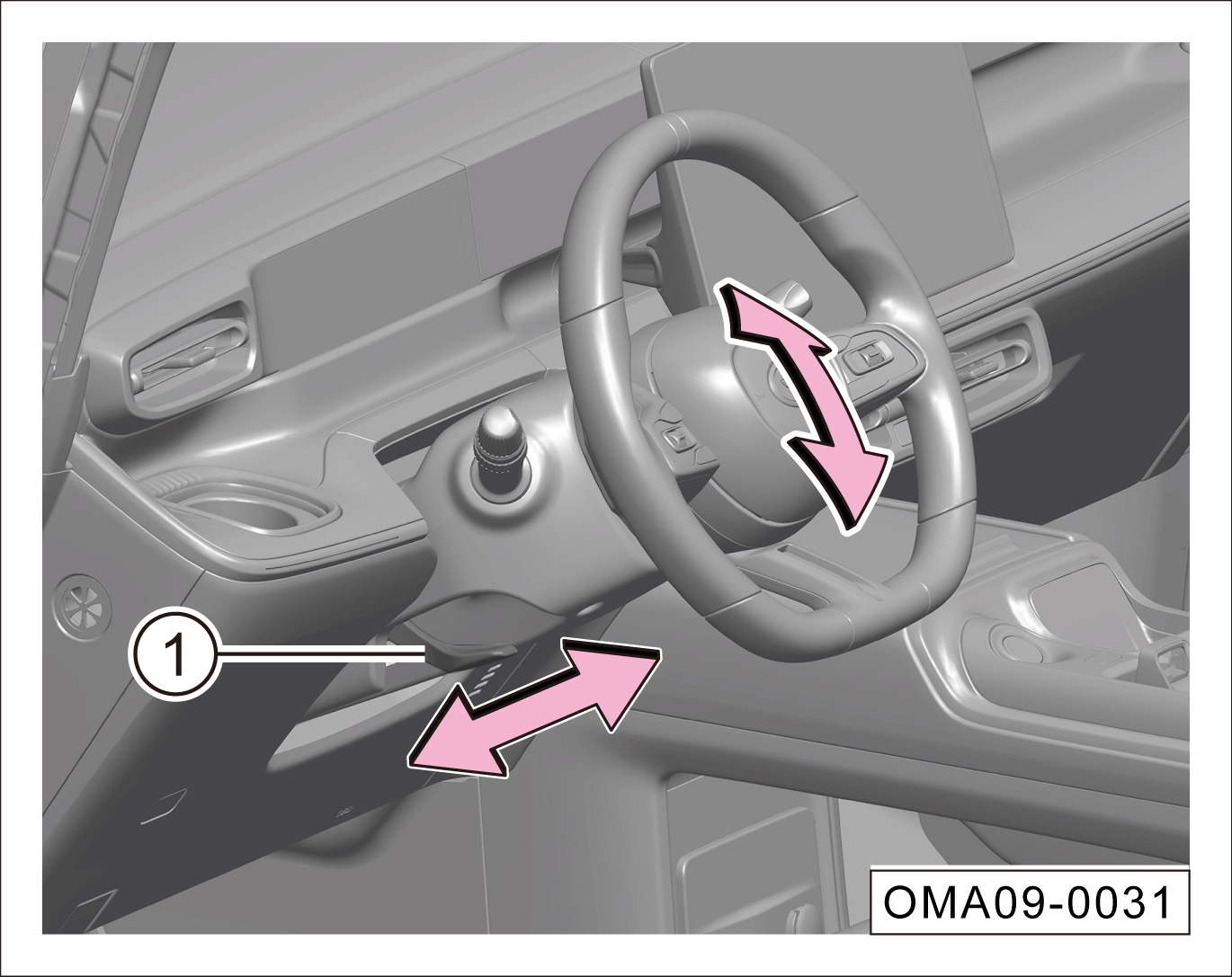 根据需求上、下、前、后调整方向盘至合适位置,确保能够看到组合仪表及所有指示灯。