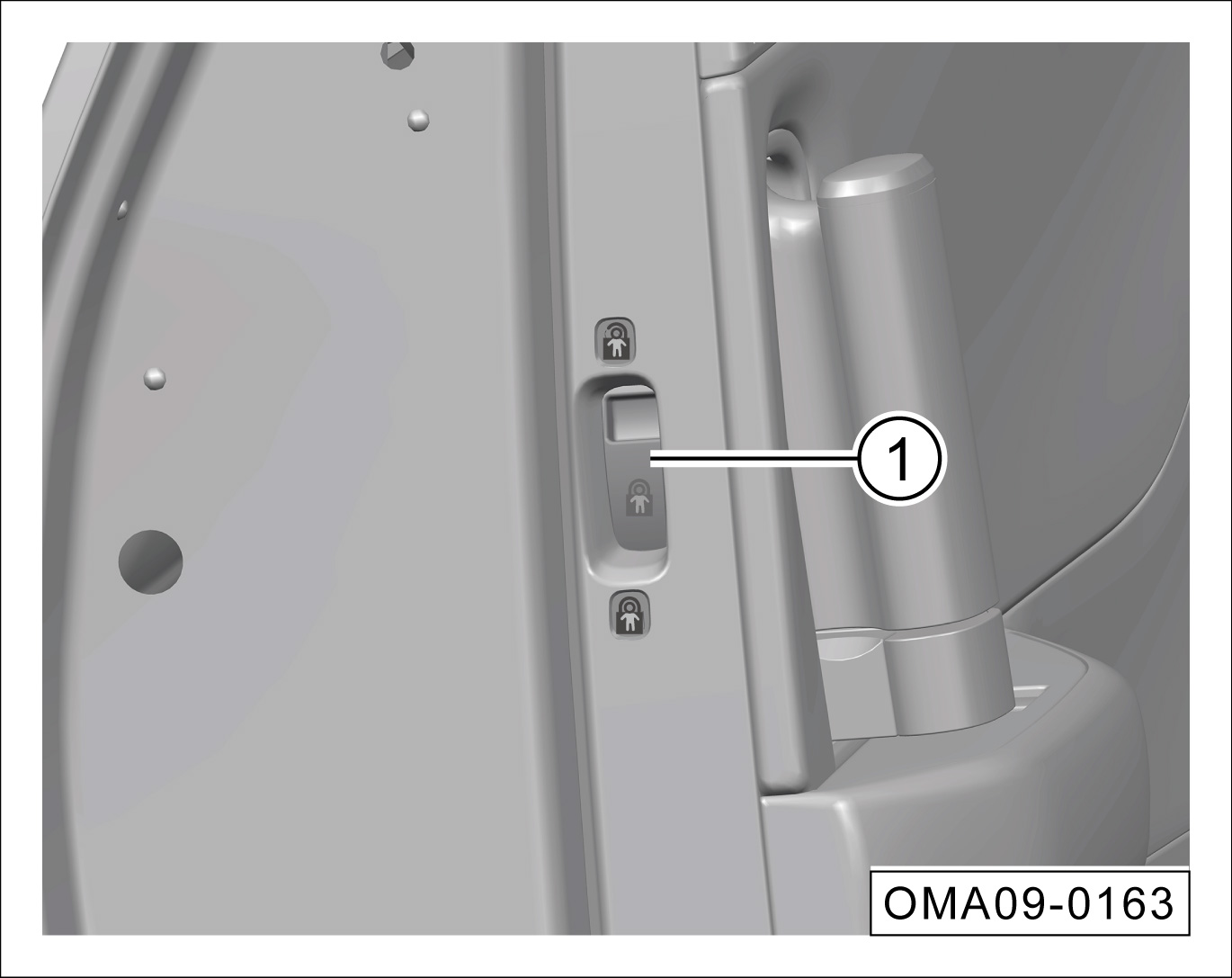 点击中央门锁按键①可以在车内闭锁/解锁所有车门。