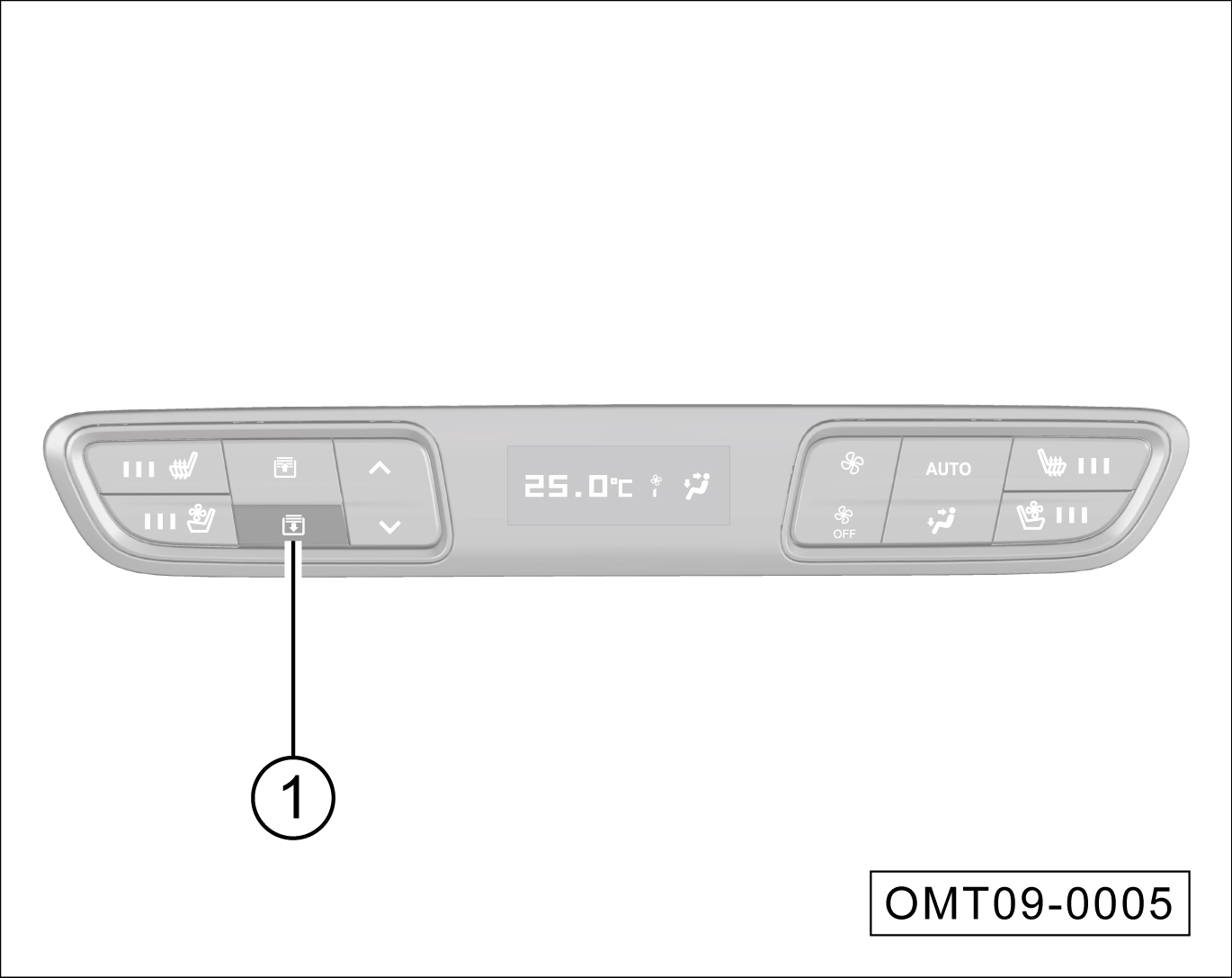 天窗处于关闭状态,向前推动开关①(长按约10s),天窗开始自动执行打开及关闭动作,最后运行到全关位置,期间保持天窗开关不松开。