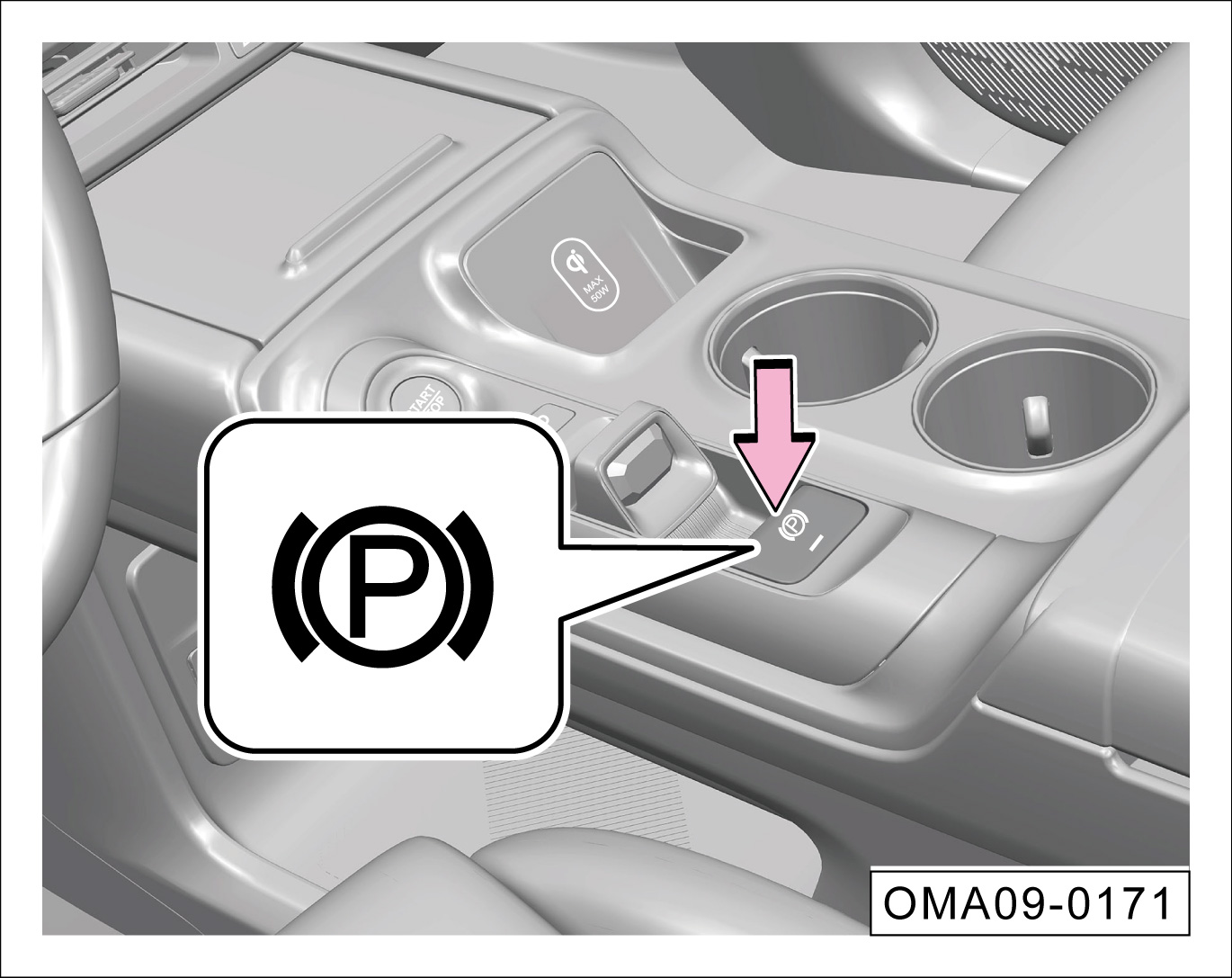 车辆启动且挡位不在P挡时,踩下制动踏板,按压EPB电子驻车按键,仪表中