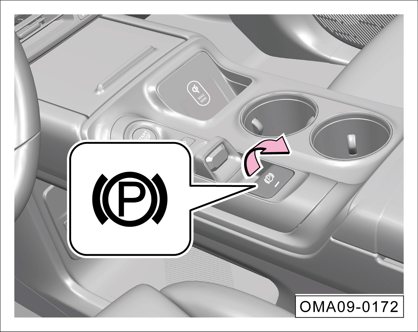 离开车辆前,特别是在坡道驻车时,将挡位切换至P挡,施加电子驻车制动,并确保车辆不会移动。