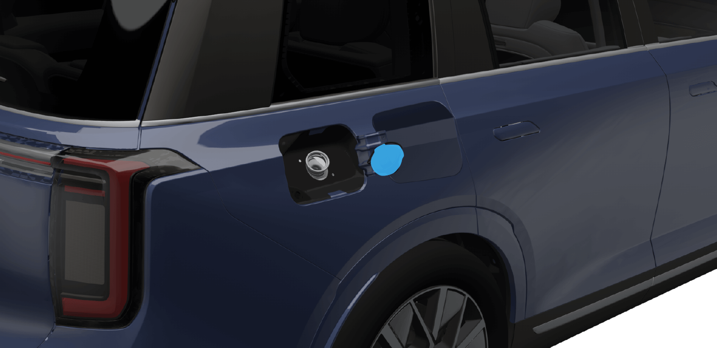 当通过车内按键无法解锁加油口盖板时,可通过手动应急解锁,尝试开启右侧加油口盖板。
