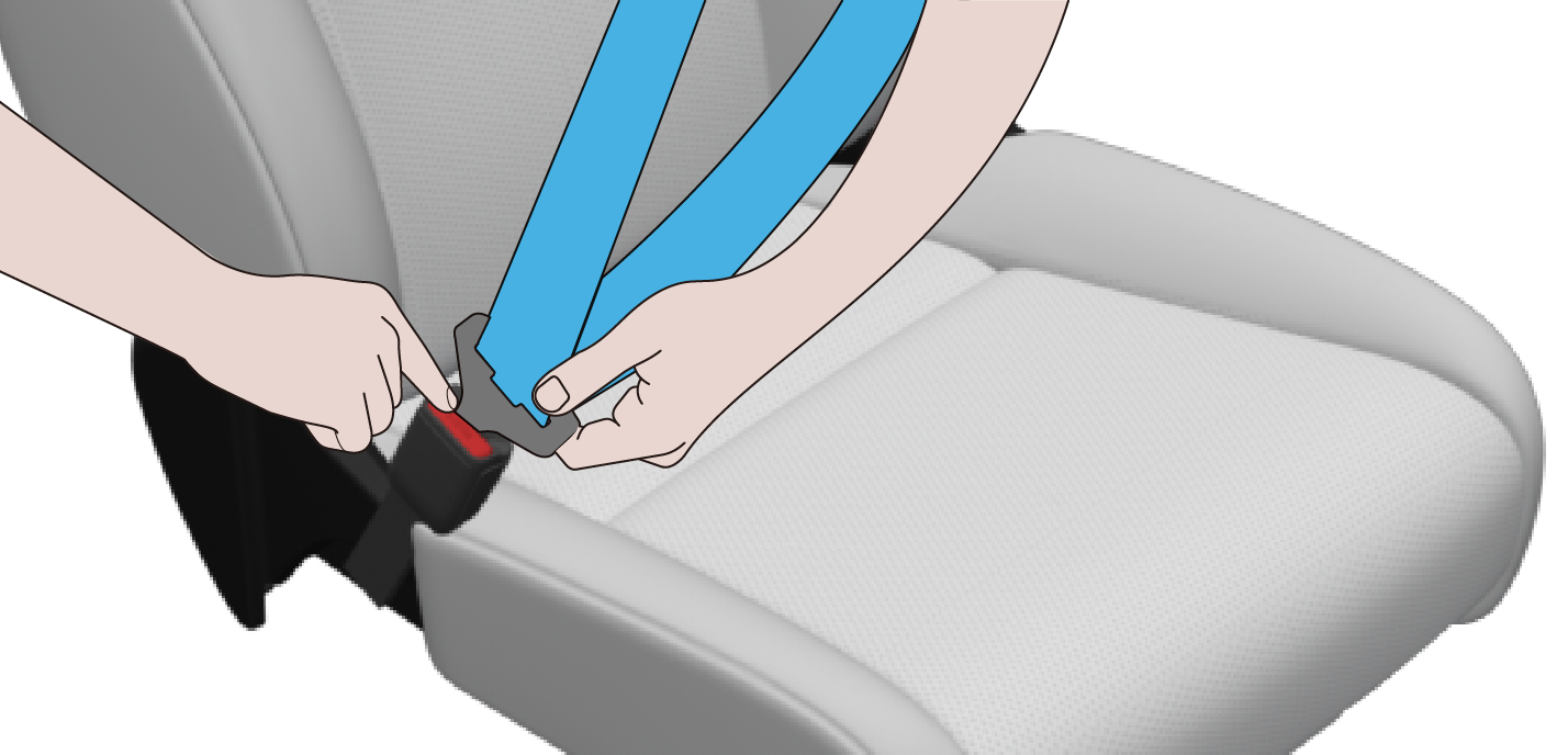 按下安全带锁扣按键,安全带将会自动缩回。