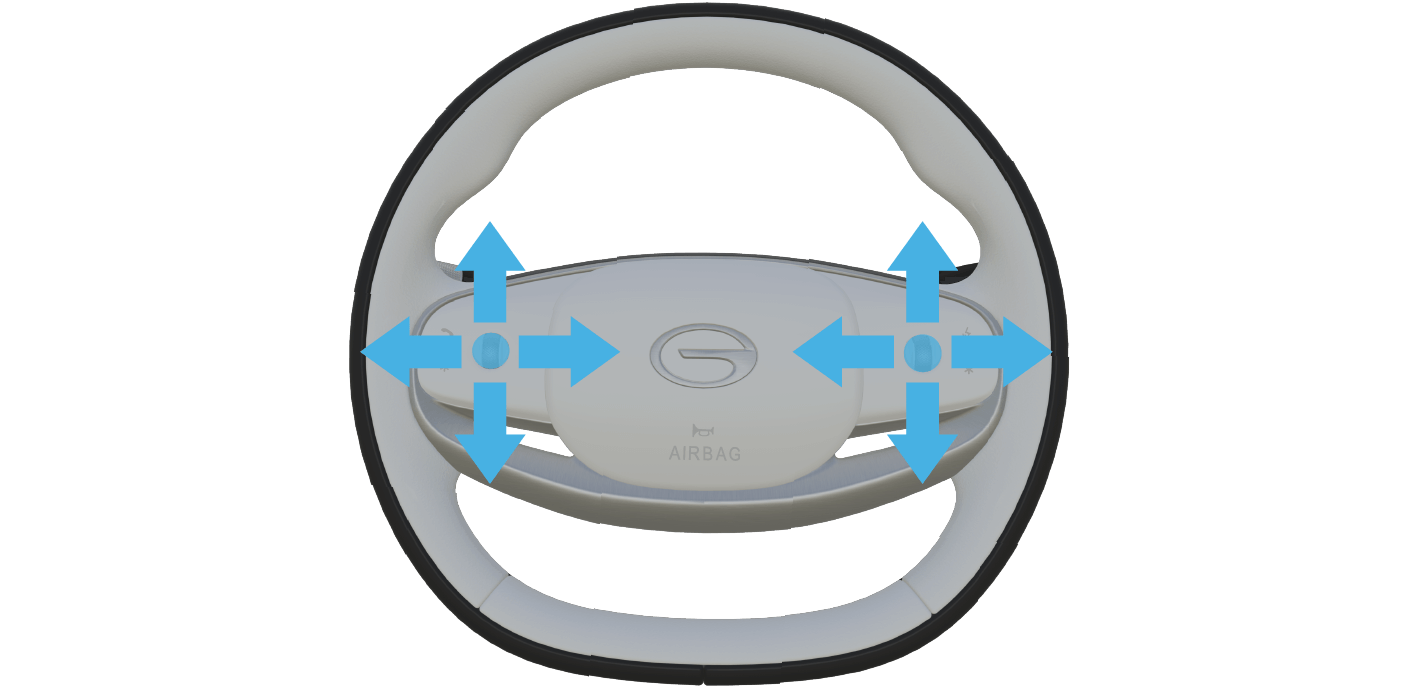 使用方向盘左/右侧滚轮,分别调节左/右侧外后视镜角度至合适位置。