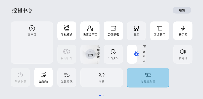 从中控屏顶部下滑出“控制中心”,选择“后视镜调节”。若控制中心无“后视镜调节”选项,您可以通过点击屏幕右上角的“编辑”,将“后视镜调节”添加至控制中心。