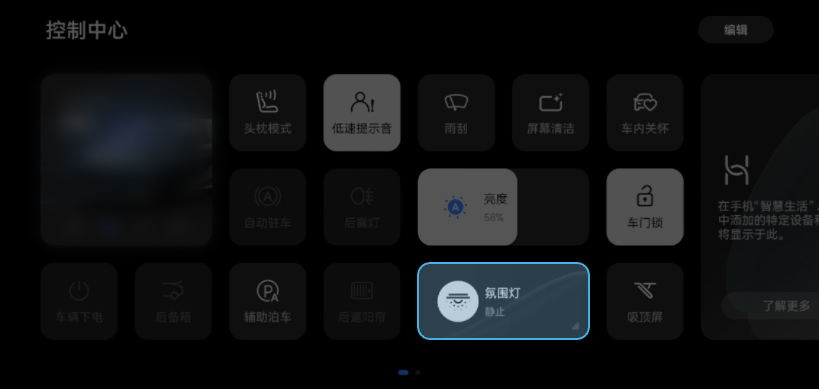 氛围灯开启后,您可以根据个人喜好设置氛围灯。