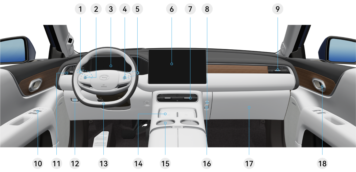 通过下图,您可以了解车辆内部的常用部件。