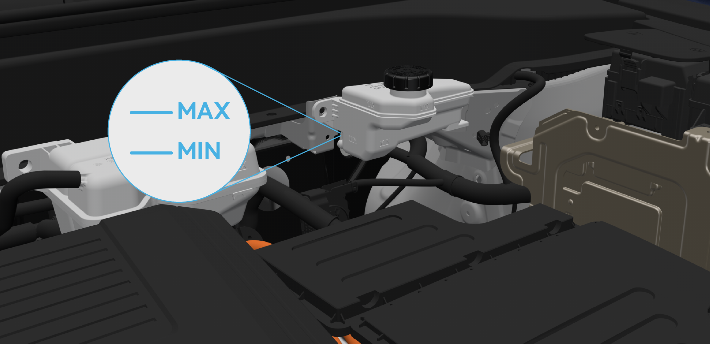 在规定的保养期内检查制动液液位,制动液液位应介于MIN与MAX标记之间。