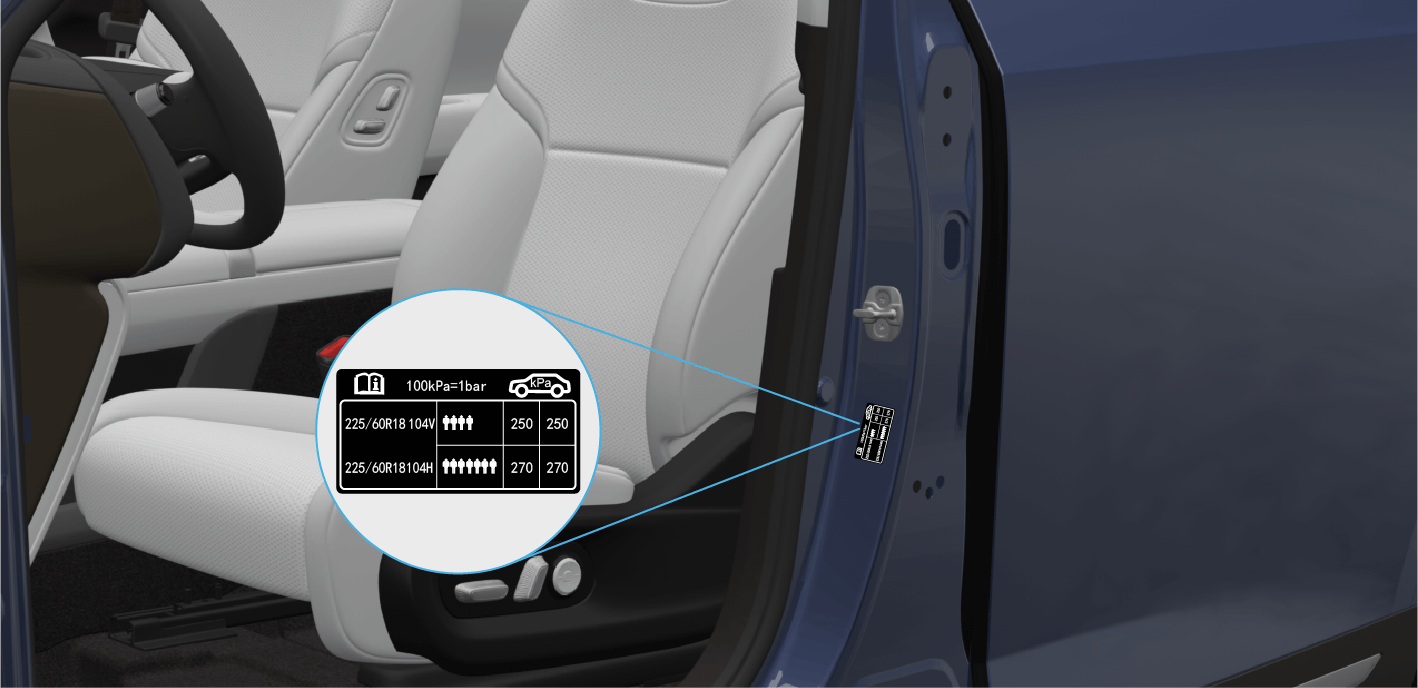 胎压标签位于左侧围外板上。