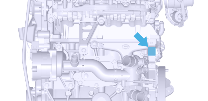 增程器(发动机)型号和编号位于缸体如图所示位置。