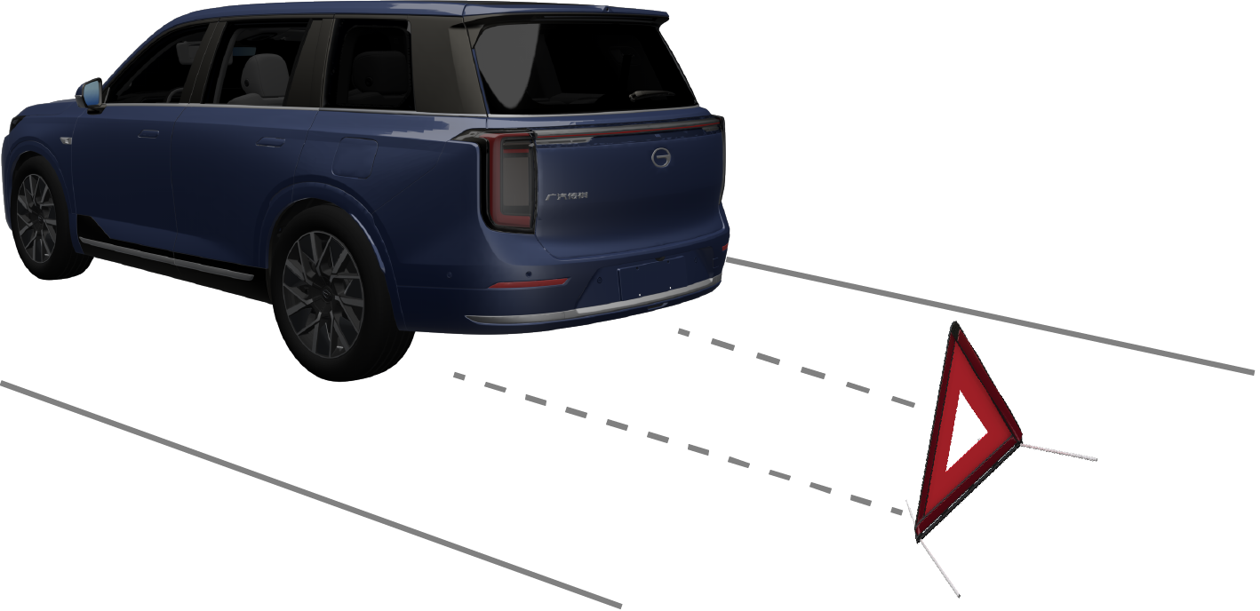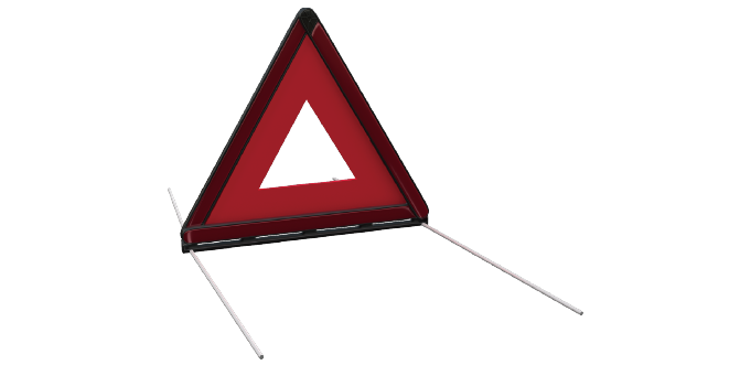 拉开底部四个支架后,将三角警示牌放置在车后。反光面朝后,以便提醒后方车辆。
