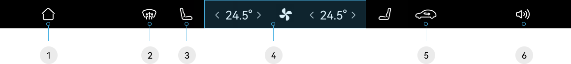 您可以在中控屏底部的工具栏便捷地调节空调、座椅和音量等。