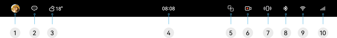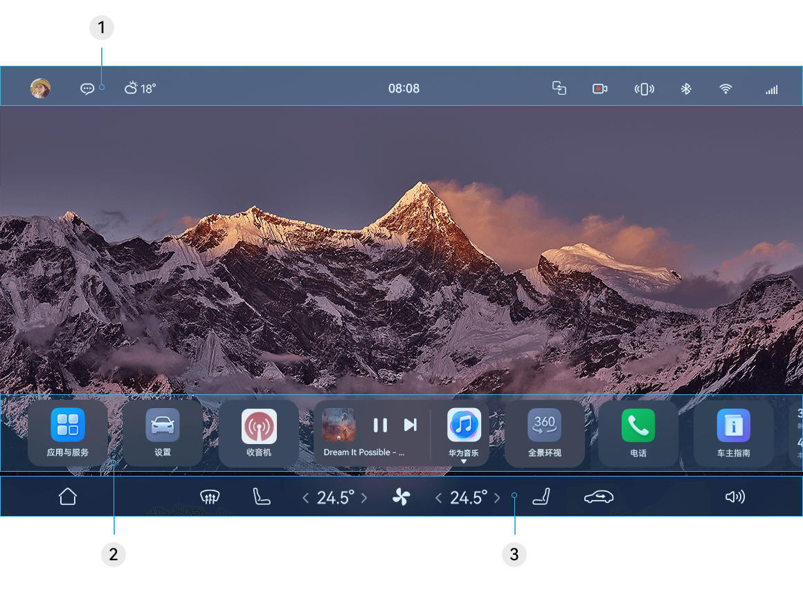 您可以在中控屏顶部的状态栏进入功能界面、查看车辆通知和状态等。