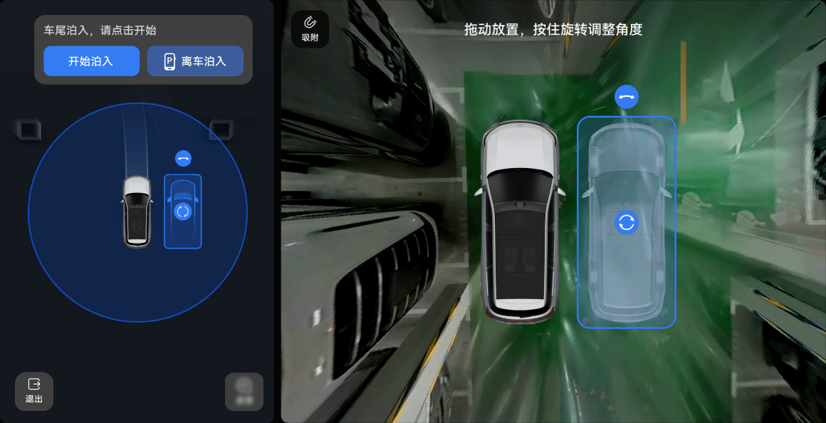 驾驶员打开泊车界面,完成泊车后,若车辆挡位切换为 P 挡,泊车界面会退出。