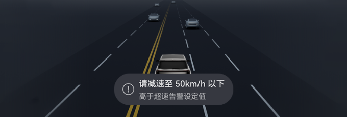 假设绝对告警阈值设置为 50 km/h,则当车速超过该值时,仪表屏上显示“请减速至 50 km/h以下”的弹窗提示,可选伴有提示音(若设置)。