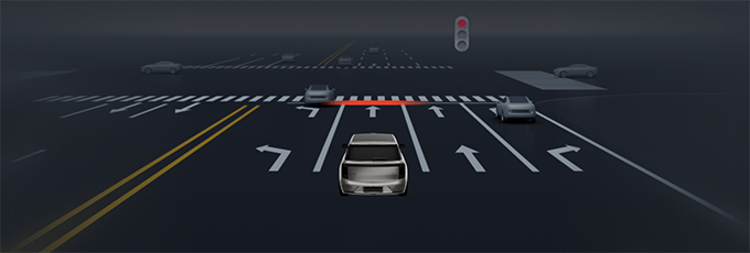 闯红灯提醒:当前车道的机动车交通信号灯为红灯,而自车未停车导致存在闯红灯风险时,仪表屏上自车前方的停止线红色高亮,并伴有提示音。