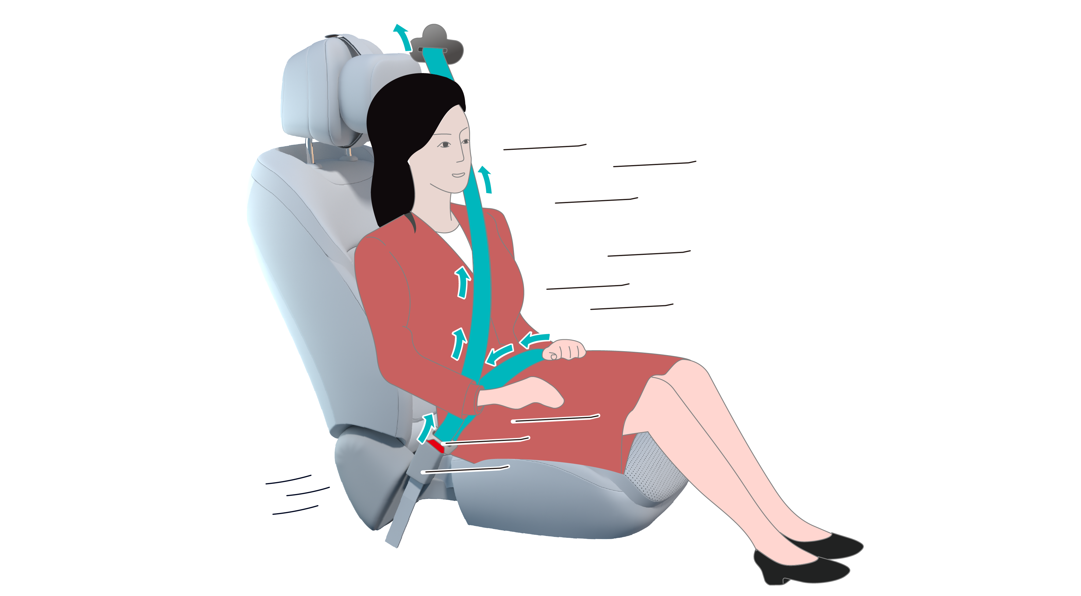 当碰撞发生后,驾乘人员身体向前运动,此时安全带预紧限力装置启动,使安全带对身体的约束力处于一定力值范围之内,防止力值过大对驾乘人员造成进一步的伤害,同时与安全气囊相配合,实现更好的安全保护性能。