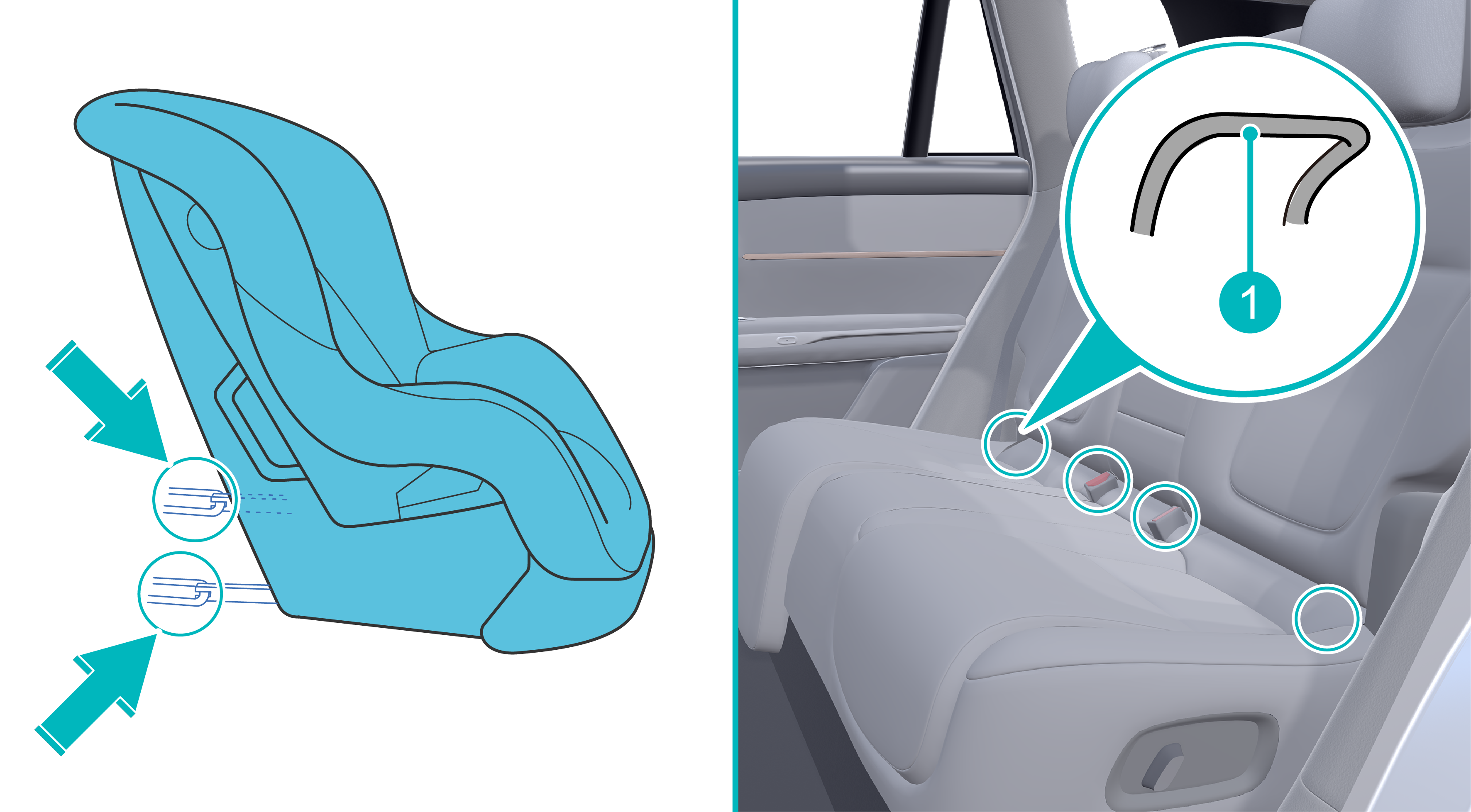 后排两侧座椅有4个ISOFIX固定接口①,用于安装儿童座椅。