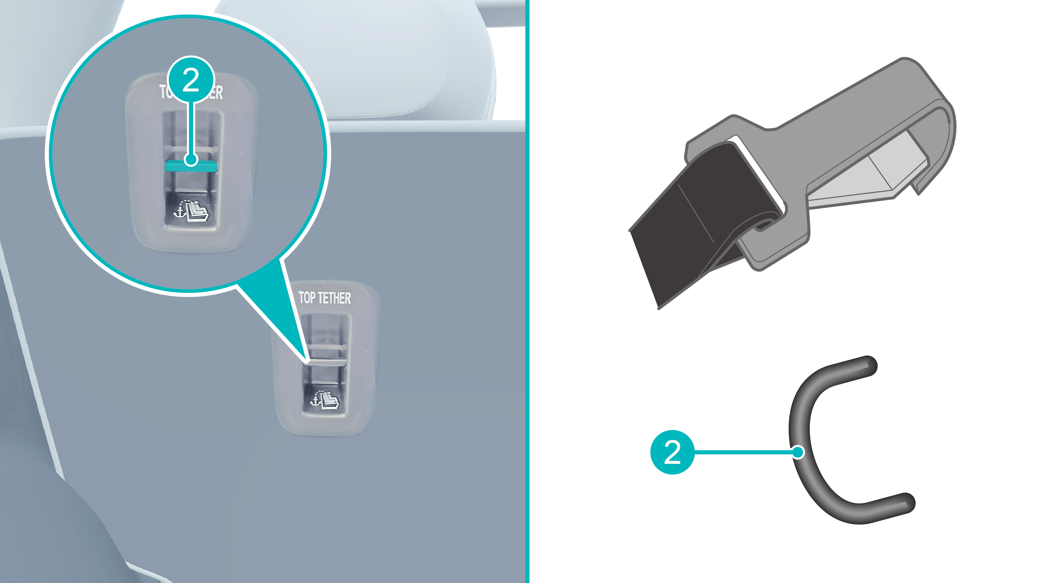 后排座椅背部有2个上固定点②,用于固定儿童座椅紧固带。