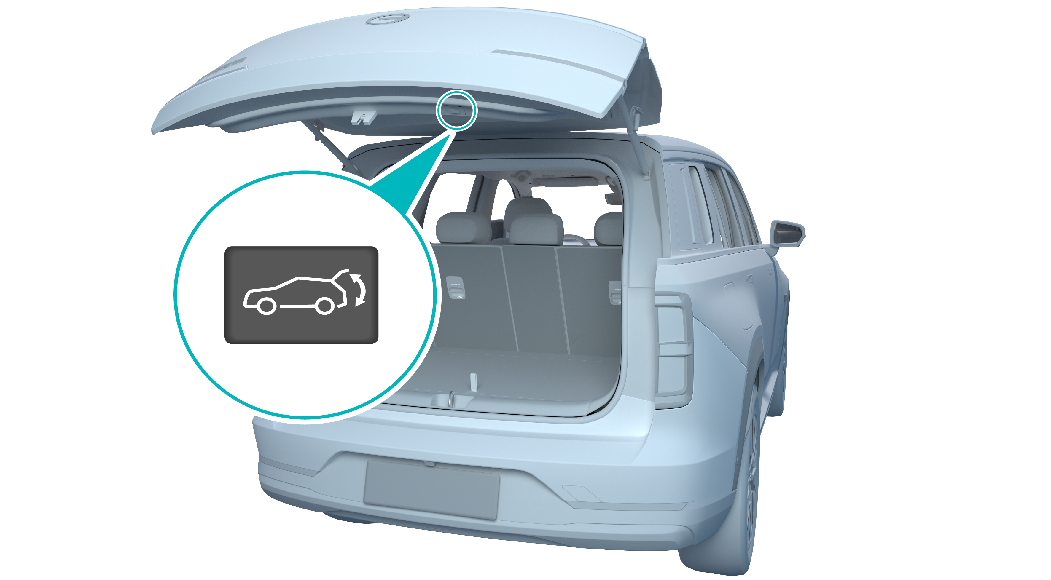 短按后背门内侧按键,后背门会自动下降直到吸合关闭。在关闭过程中,再次按该按键,后背门会停止关闭。