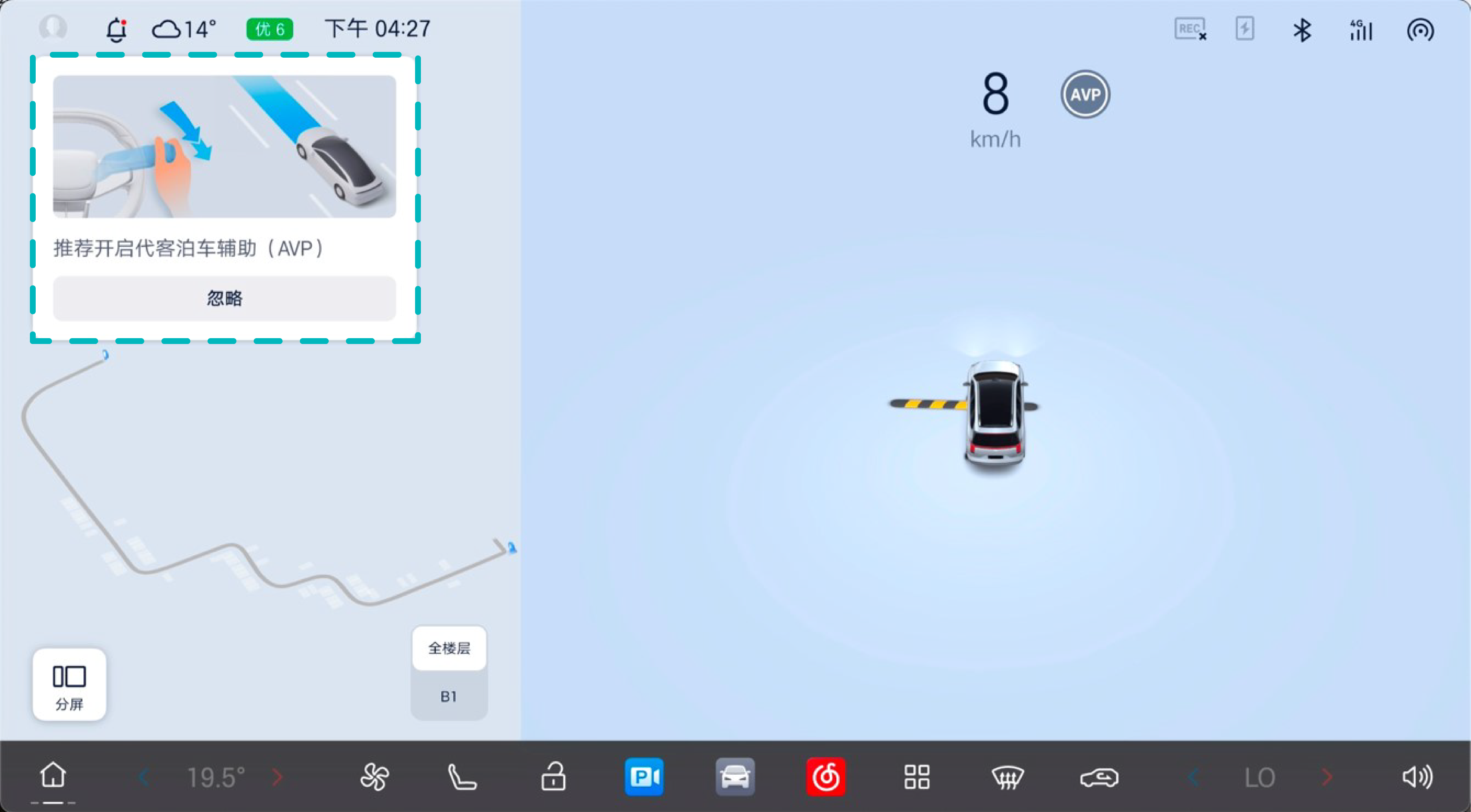 路线记录完成后, 需要离开地下车库, 再重新进入地下车库后, 才能启用代客泊车辅助功能。