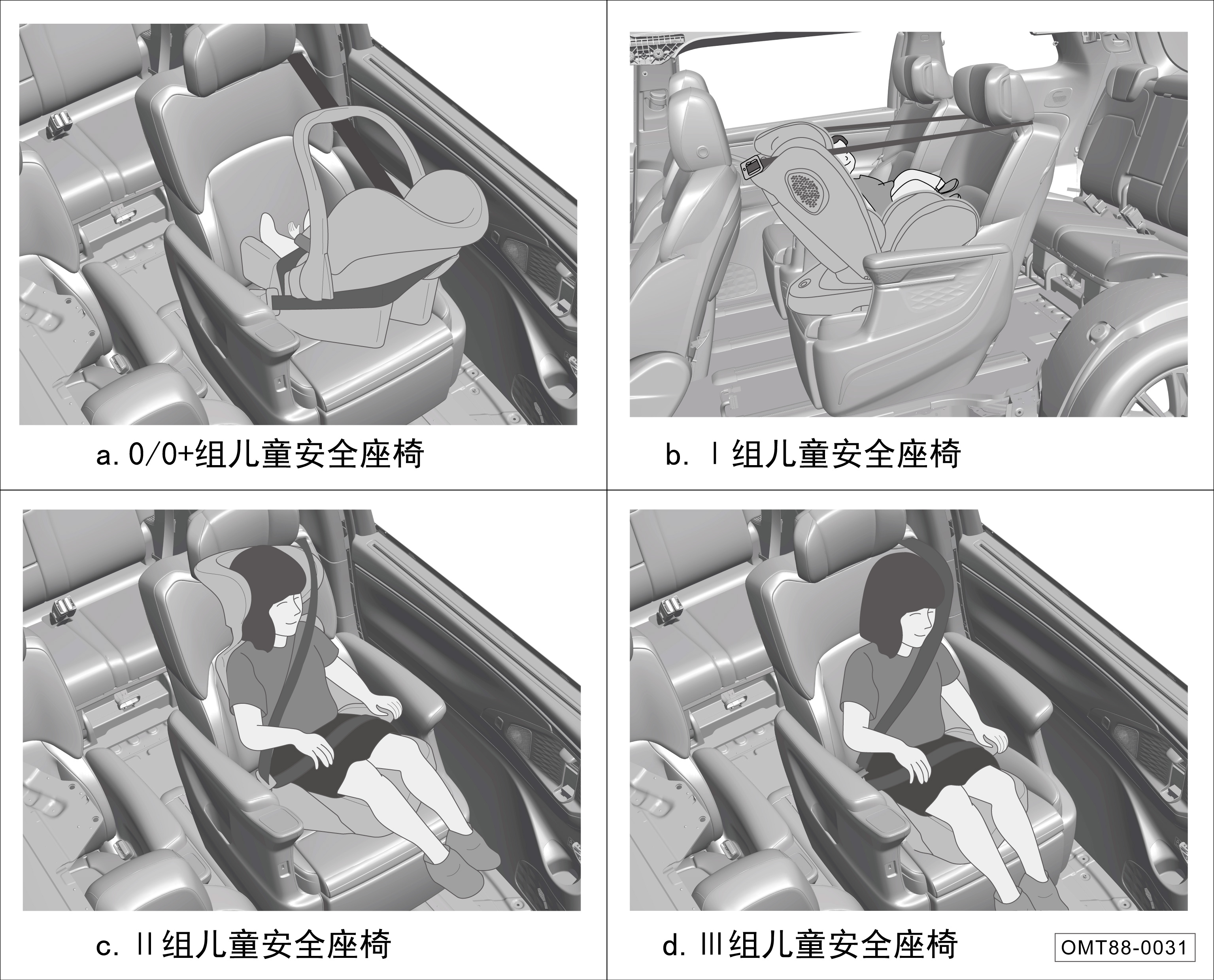 在实际安装儿童安全座椅过程中,务必参阅儿童安全座椅使用说明书,正确安装儿童安全座椅。