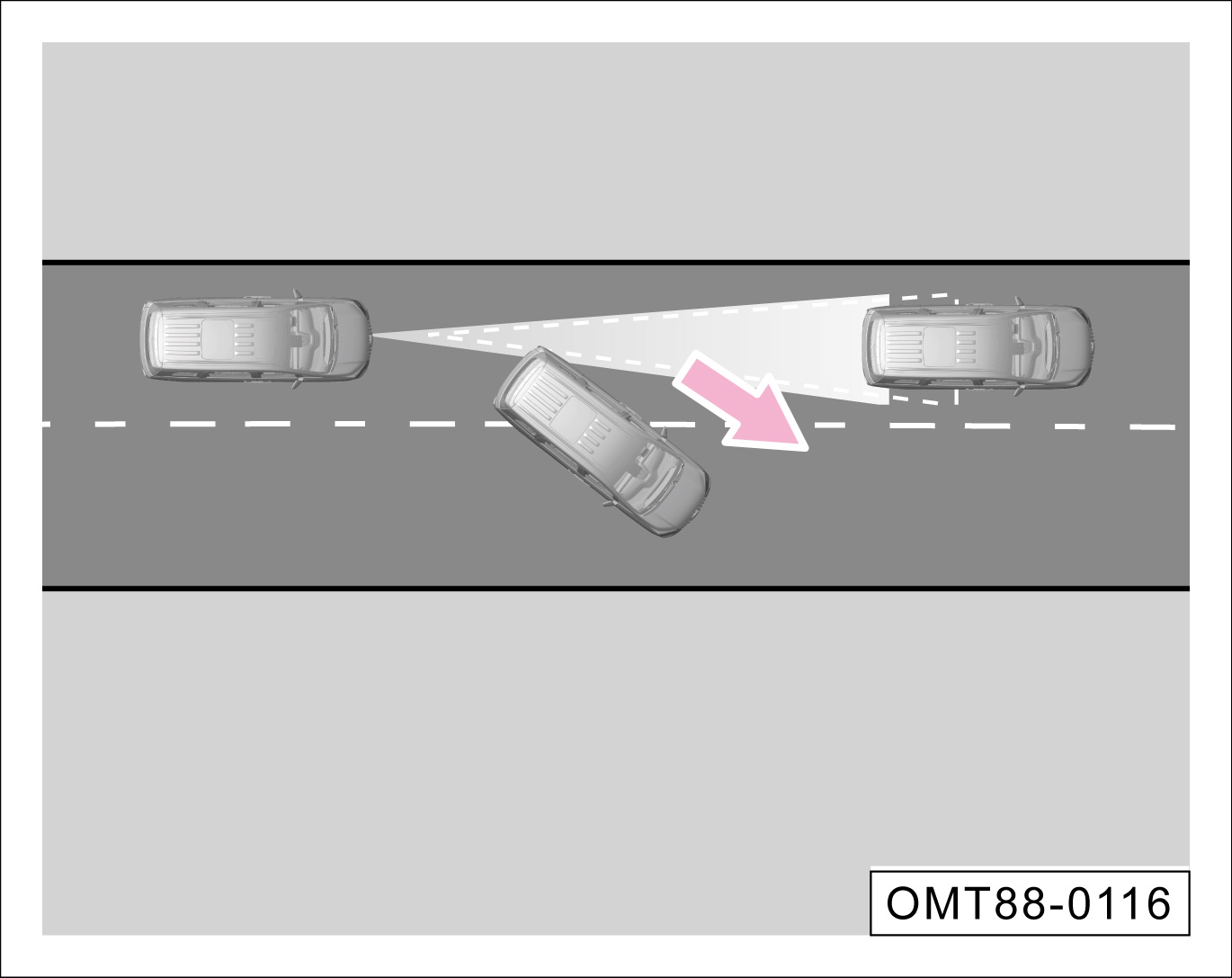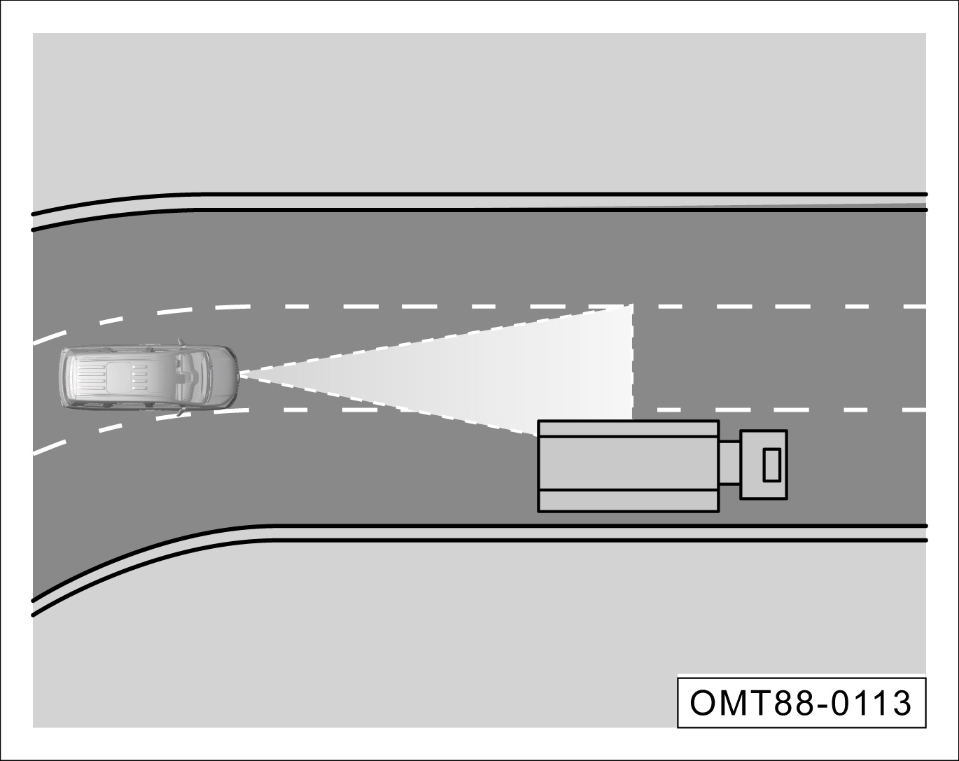驶出弯道。驶出长弯道时,因为系统将预先计算行车道,所以毫米波雷达传感器可能会对相邻车道上的车辆作出反应而对本车制动。此制动过程可通过踩下加速踏板来中断。
