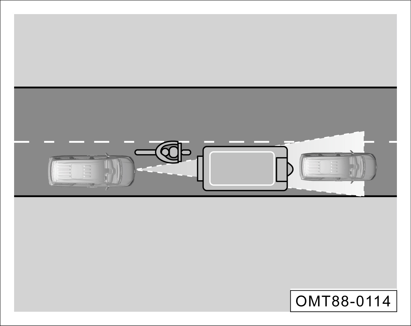 暴雨、水雾、冰雪或污泥均可能恶化毫米波雷达传感器的功能,导致ACC暂时关闭。同时,组合仪表显示屏显示下列文本信息:“前向雷达被遮挡”、“巡航工作条件不满足”。此时自适应巡航系统和前碰缓解系统无法发挥作用。